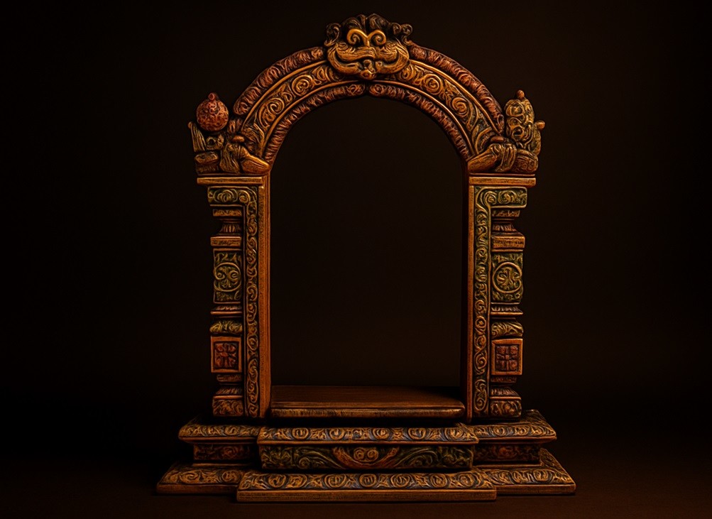 🔸In temples, it forms a permanent architectural frame behind the deity and aligns with sanctum design.