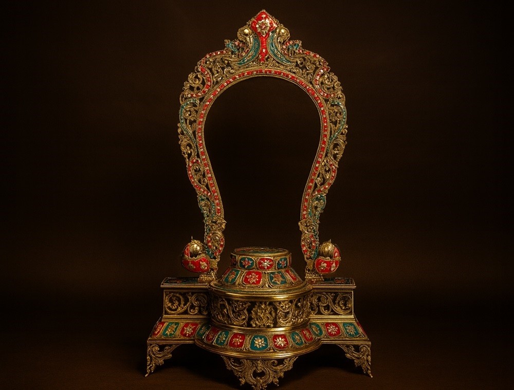 🔸The arch enhances rituals by reflecting lamp-light and amplifying the murti’s visual energy.