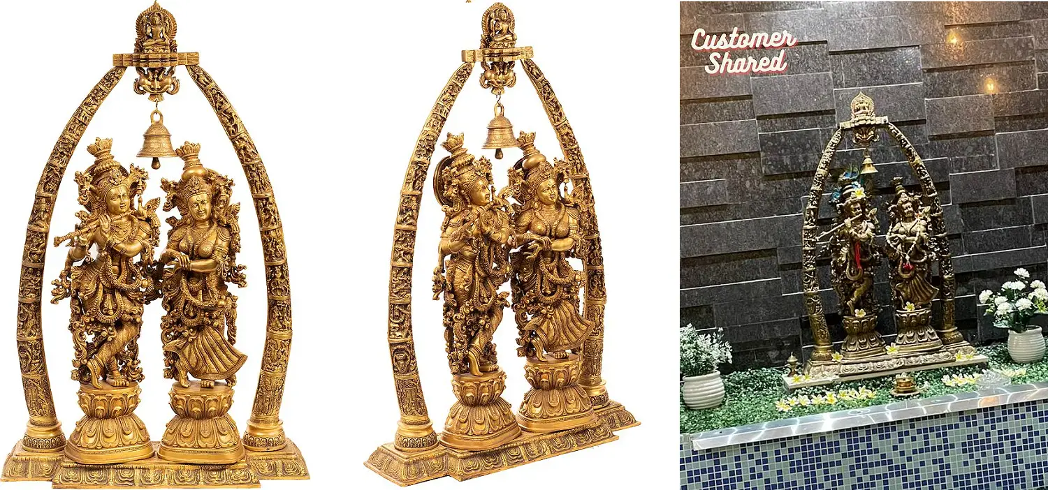 Stones such as black stone from Mahabalipuram, pink stone from Odisha, granite, and gemstones are popular materials for the sculpting of Hindu statues, including icons of Radha-Krishna. Stones are preferred for their long life and unique textures, which add to the statue an artistic appeal. Different themes from the Lilas of Radha-Krishna are depicted in stone, which makes for a marvelous addition to your halls or gardens as an enduring reminder of the love of the couple.