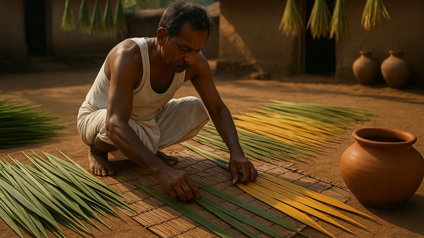 Pattachitra done on palm leaf or Tala pattra as canvas is an ancient technique in the Indian art tradition. For making a Pattachitra, the process begins with selecting an unbroken and clean palm leaf: