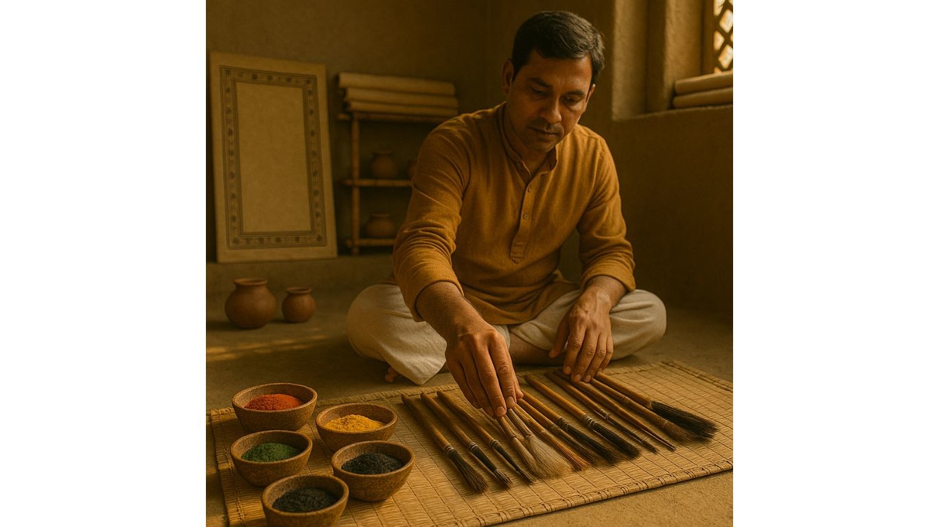 The process begins with the selection of cotton or Tussar cloth for the canvas. Cloth-based Pattachitra is perhaps the most widely recognized form of this art, especially in homes, galleries, and temples. Yet behind each vivid scroll is a labor of love — a process steeped in ritual purity, natural pigments, and ancestral technique.