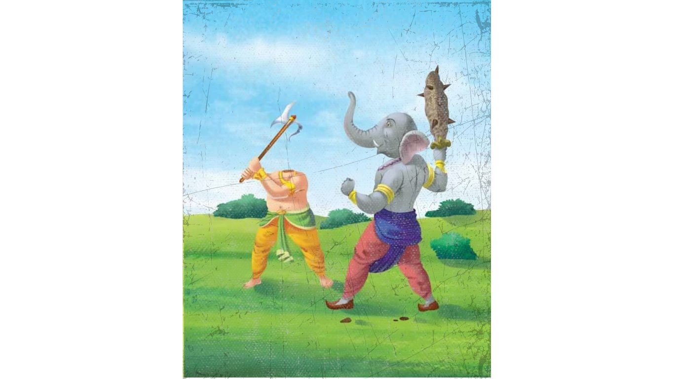 The legend says Ganesha defeated the demon Sindoor, whose blood turned him saffron-orange, giving rise to the Kesari form.