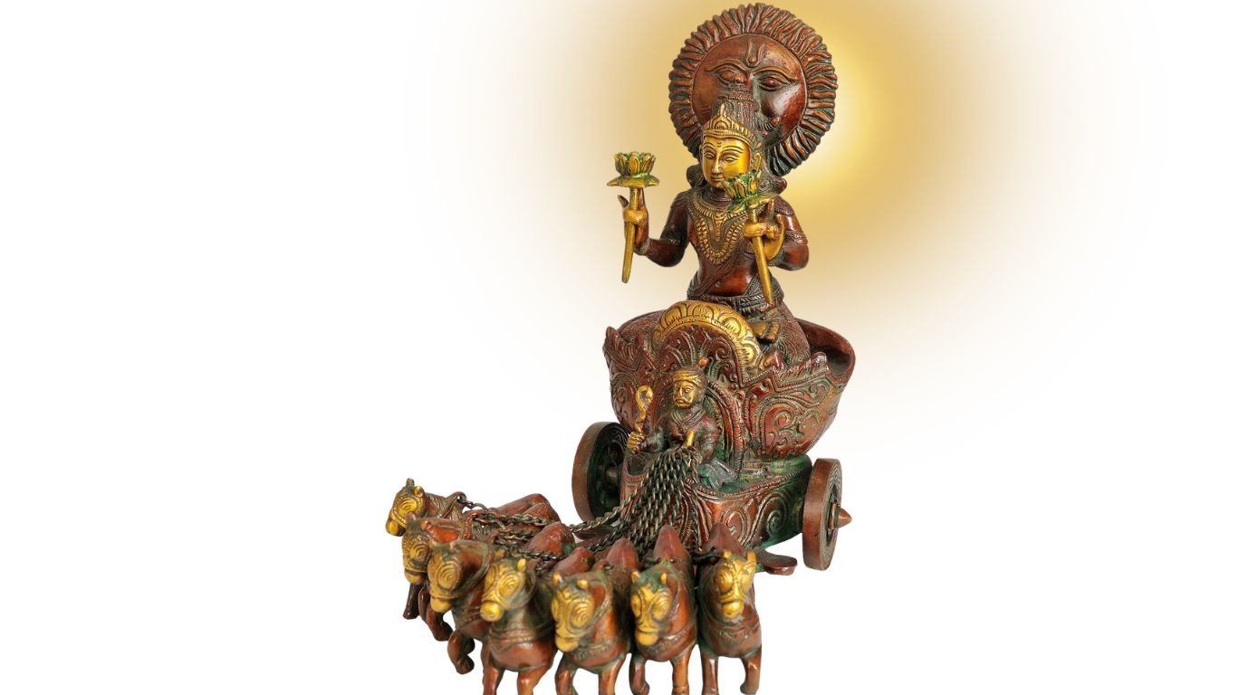 Symbol of light, health, and power, the Sun, especially the morning Sun, is associated with vermilion color qualities Surya bestows on his worshippers.