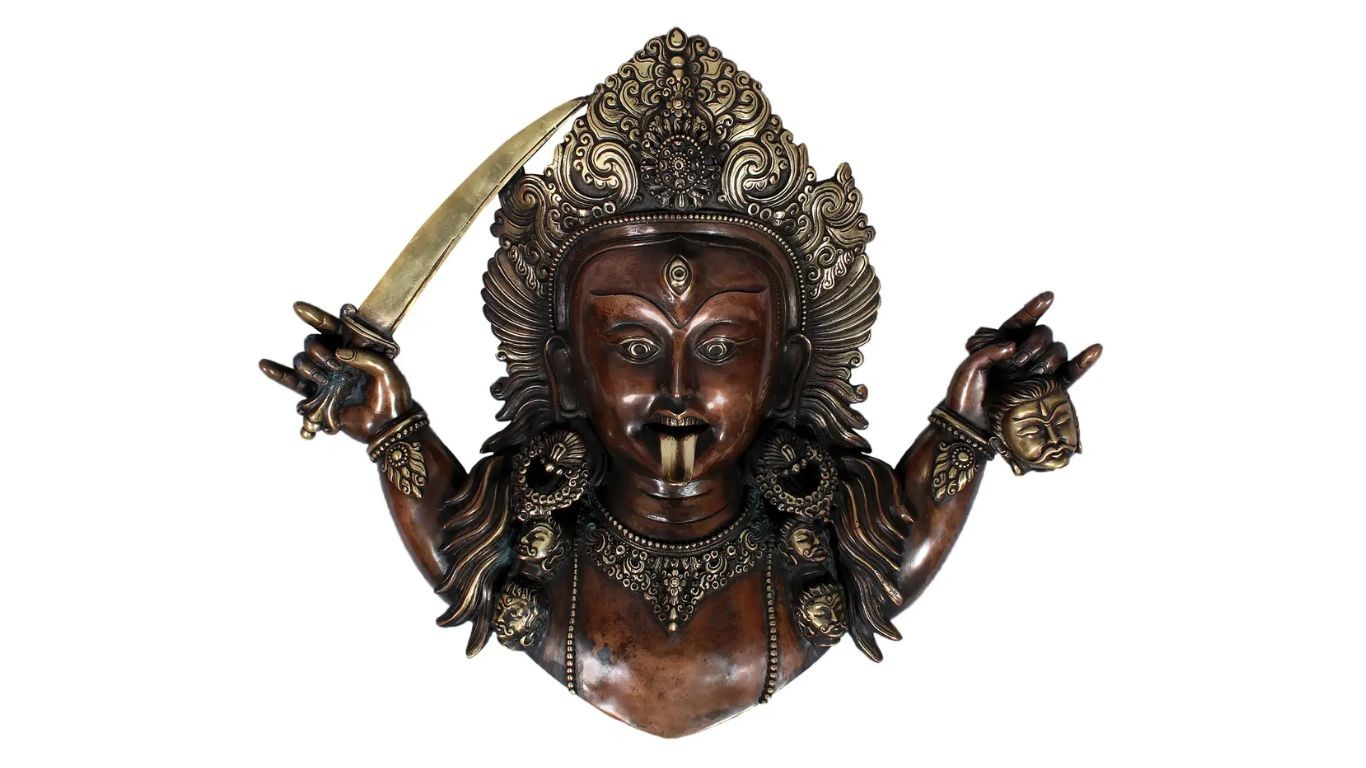 The masks of goddesses Kali and Durga are often used in the sacred decor of Hindu homes. The goddess with her gentle eyes looks after everyone in the household, acting as a divine protector of the family from negativity and unseen obstacles in life.