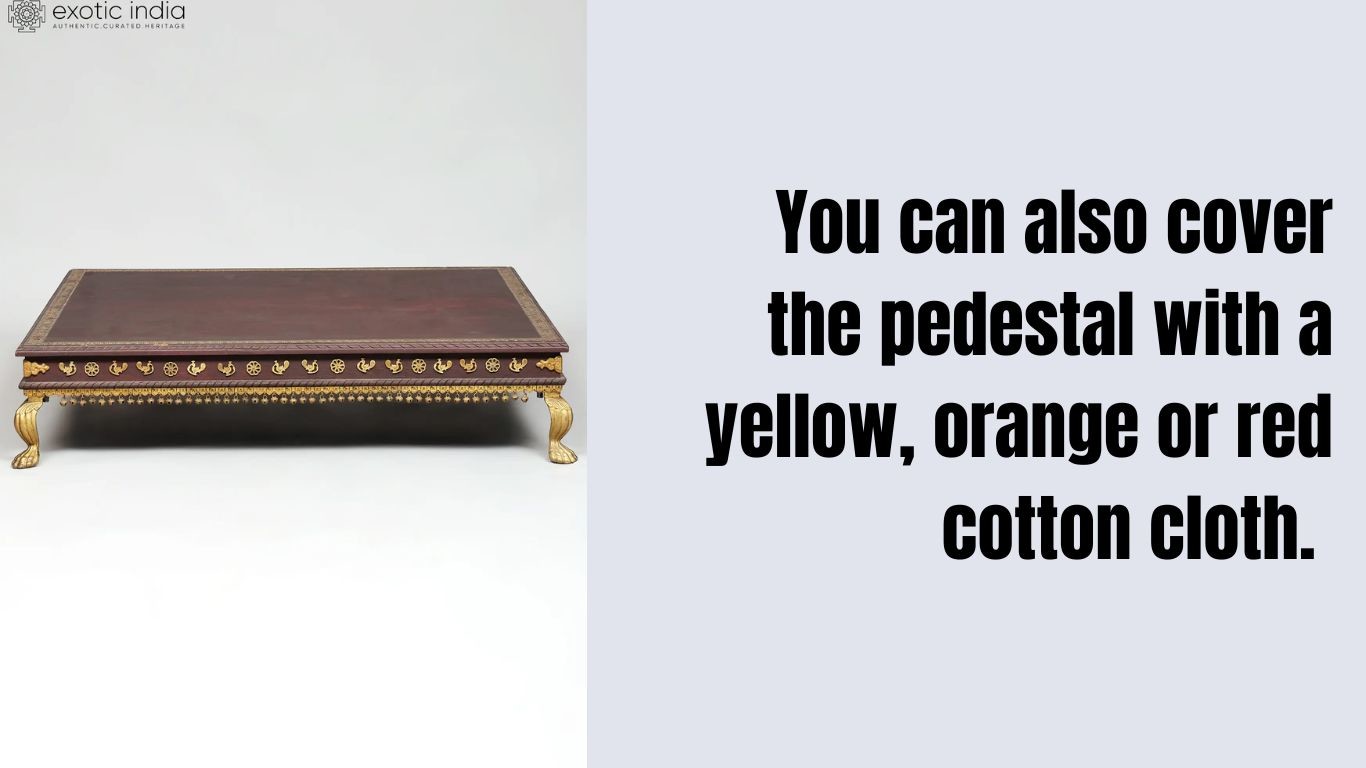 🔶Use a wooden or brass platform (chowki) for placement. You can also cover the pedestal with a clean yellow, orange or red cotton cloth.