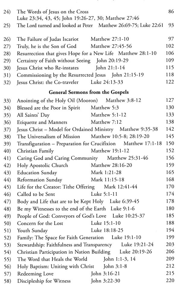 In this volume the sermons are divided into five sections namely: Sermons on texts from the Hebrew Bible, Sermons for Lent and Holy Week, General Sermons from the Gospels, General Sermons from other New Testament Books, and Advent Season sermons.