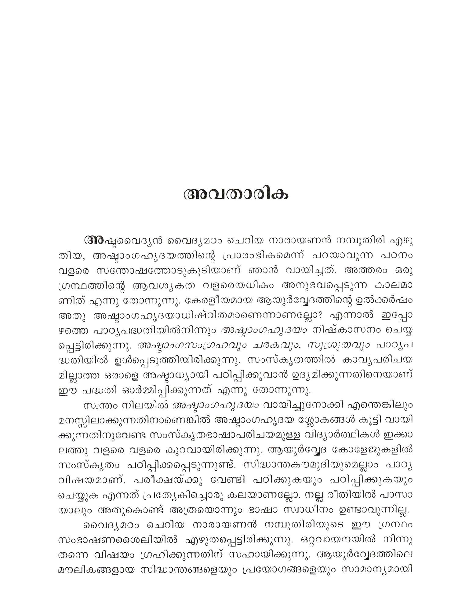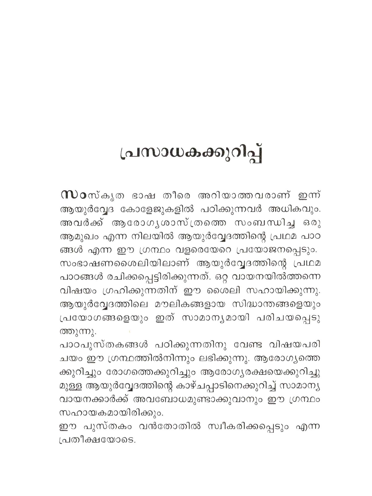 ആയുർവ്വേദത്തിന്റെ പ്രഥമപാഠങ്ങൾ അഷ്ടാംഗഹൃദയത്തിൻ്റെ 14 അദ്ധ്യായം കൂടിയുള്ള സ്വതന്ത്ര വിവർത്തനം- Ayurvedathinte Prathamapadamgal First Lessons of Ayurveda, which is a translation of 14 chapters of Ashtangahridayam (Malayalam)