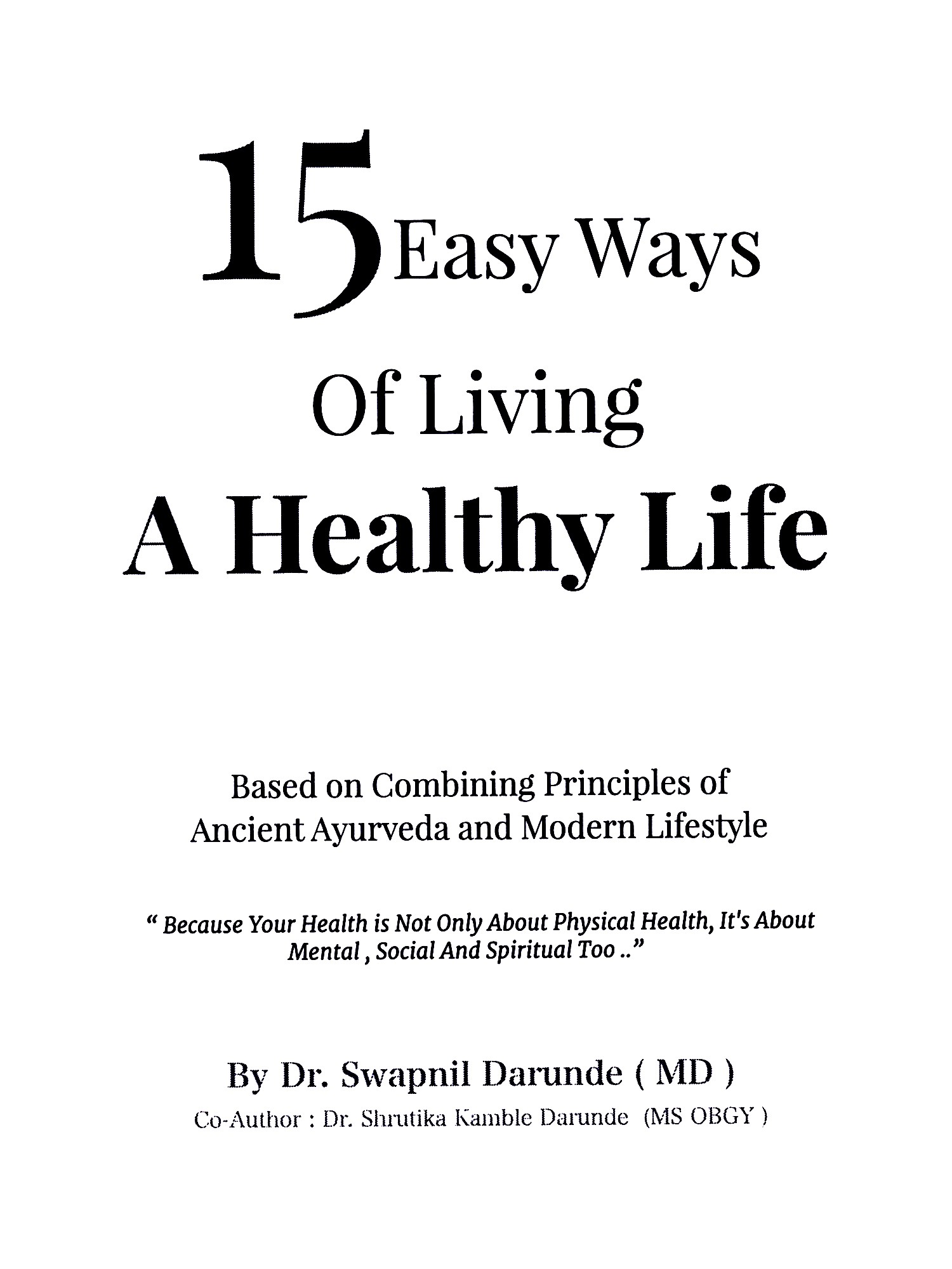 "15 Easy ways of living A Healthy Life.." This Book will teach you 15 most easy ways to live not only physically healthy life but also mentally, socially and spiritually too.
