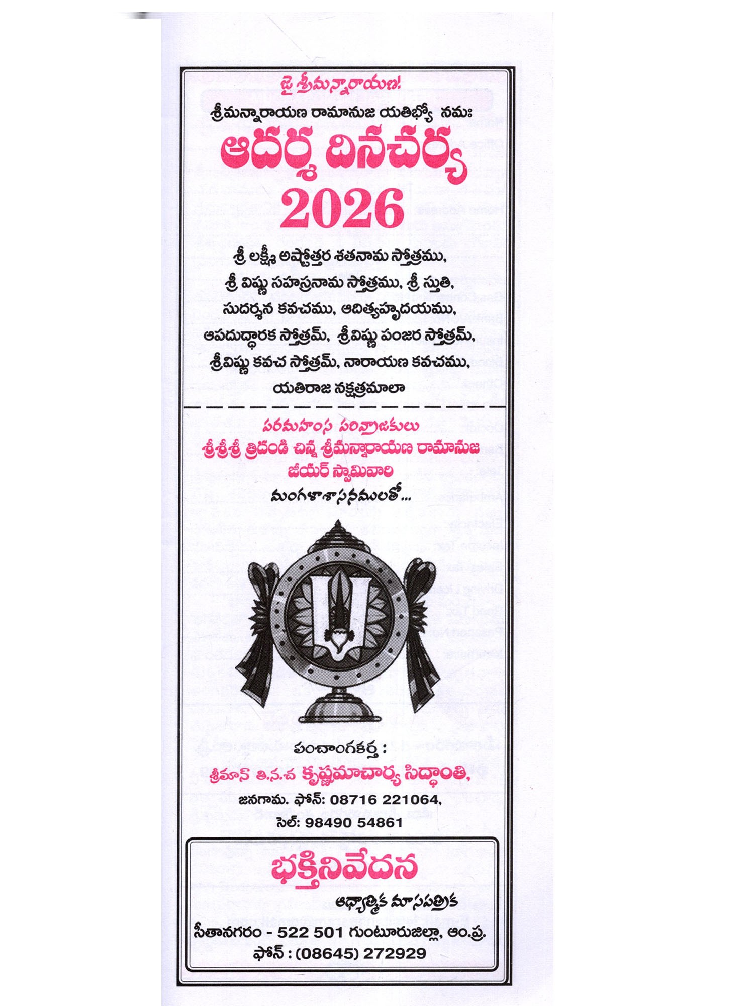 ఆదర్శ దినచర్య 2026: Ideal Daily Routine 2026 (Sri Lakshmi Narayana Perumal Vijayakeeladri Divine Temple with Ashtalakshmi) Telugu