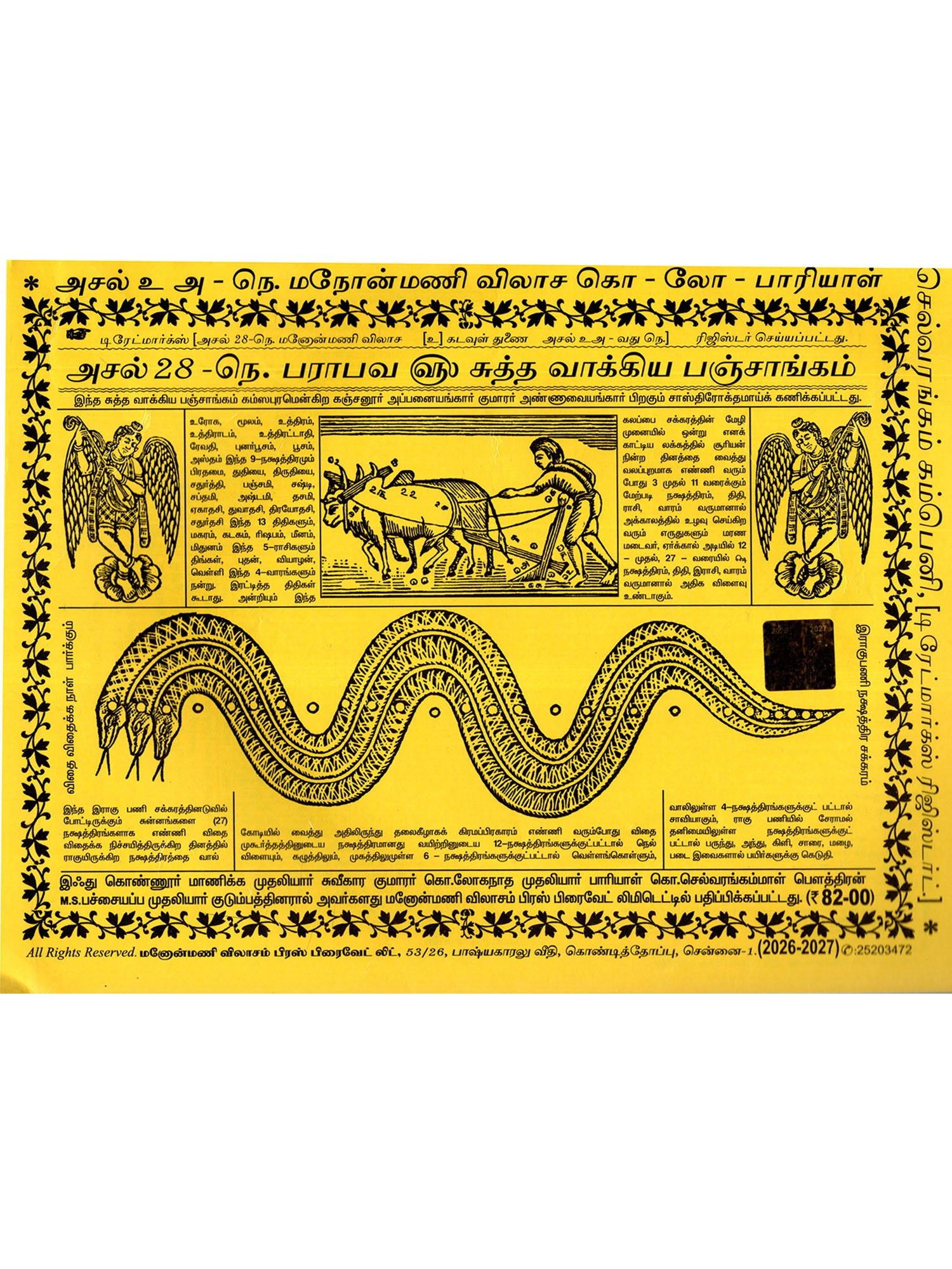 Manimekalai Vakya Panchang From 2000 Vikrama to 2010 Virodhi (Tamil)