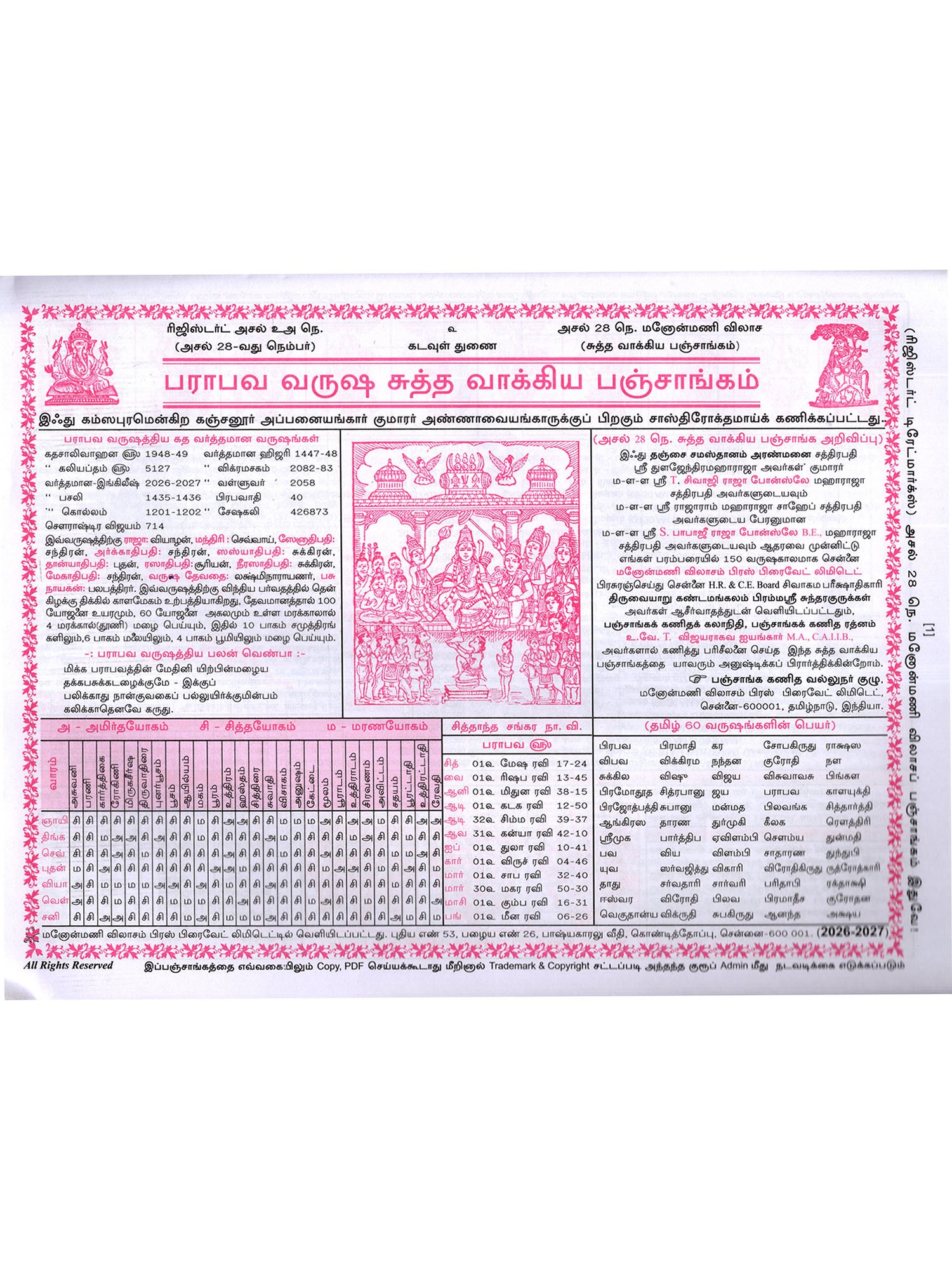 Manimekalai Vakya Panchang From 2021 Plava to 2030 Sadarana (Tamil)