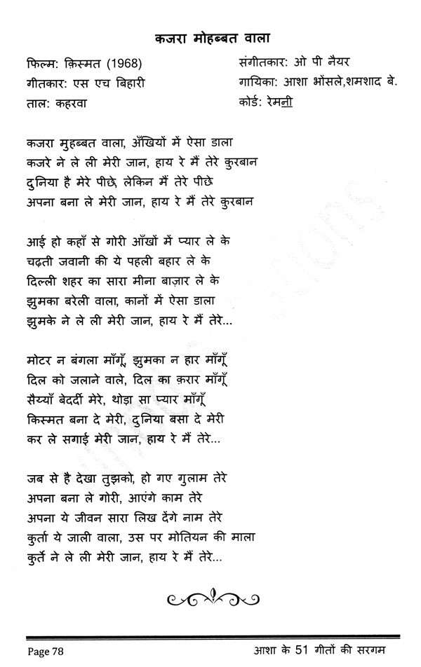 A unique collection of selected 51 songs and their notation sung by Asha Bhosle, who has a melodious, intoxicating and bubbly voice.