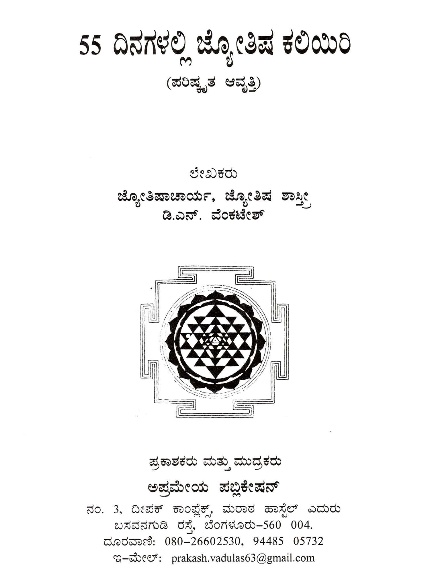 ಪ್ರಶ್ನ ಜ್ಯೋತಿಷ್ಯ ಚಮತ್ಕಾರ ಚಂದ್ರಿಕೆ: Question Astrology Miracle Moon (Kannada) An Old and Rare Book