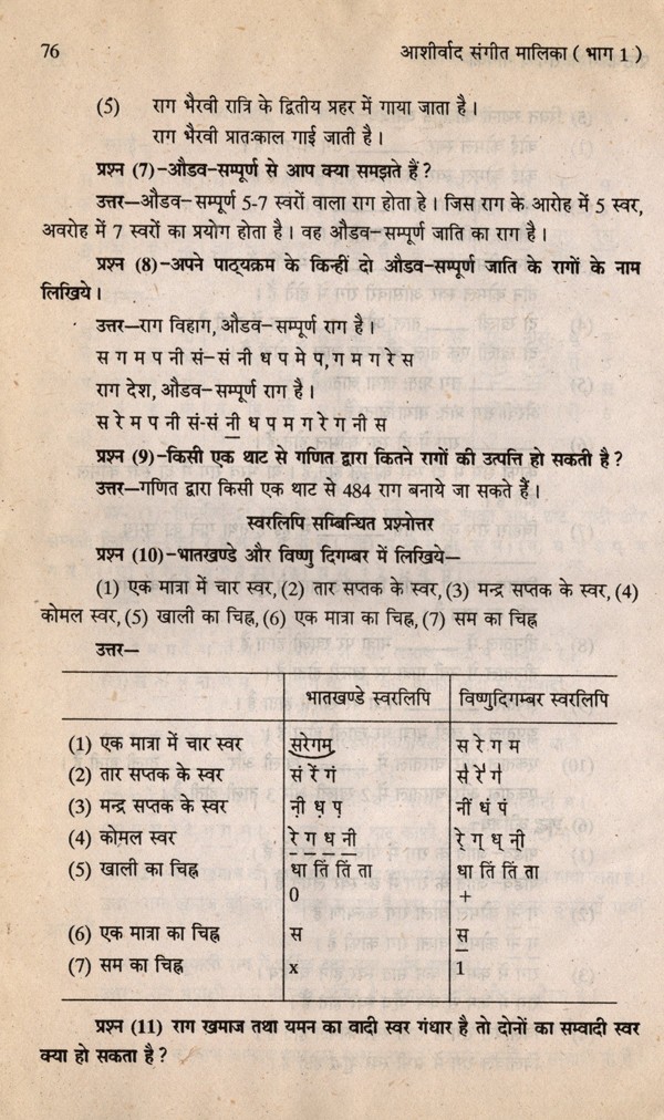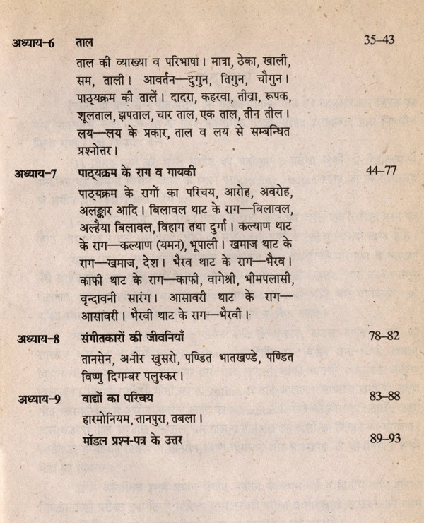 For students of High School of U.P. Board of Secondary Education, First and Second Year of Prayag Music Committee, Allahabad, Second Year of Bhatkhande Vidyapeeth, Lucknow, First and Second Part of Hindi Sahitya Sammelan and other equivalent music examinations.