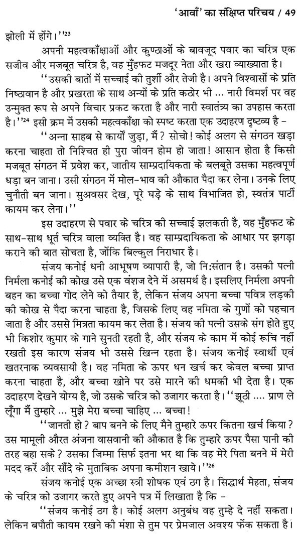 आवाँ उपन्यास स्त्री विमर्श का बृहद आख्यान है। यह उपन्यास उच्चवर्ग, निम्नवर्ग, श्रमिक वर्ग, स्त्री विमर्श, दलित विमर्श सभी का चित्रण करता है। यह उपन्यास स्त्री को माल-सामान की चीज के बजाय उसे मानवी रूप में स्वीकार करने की जिरह करता हुआ एक यादगार उपन्यास है। प्रस्तुत लघु-शोध प्रबन्ध को छः अध्यायों में बाँटा गया है।