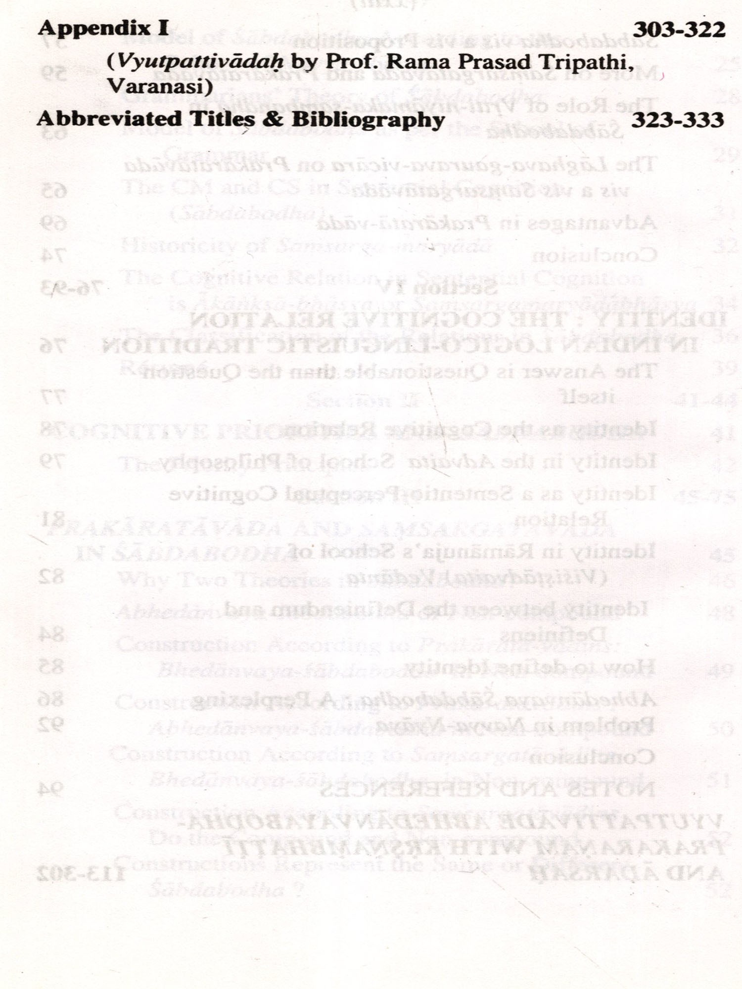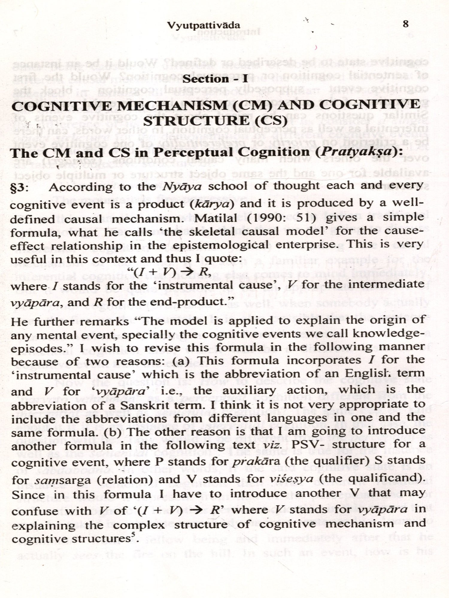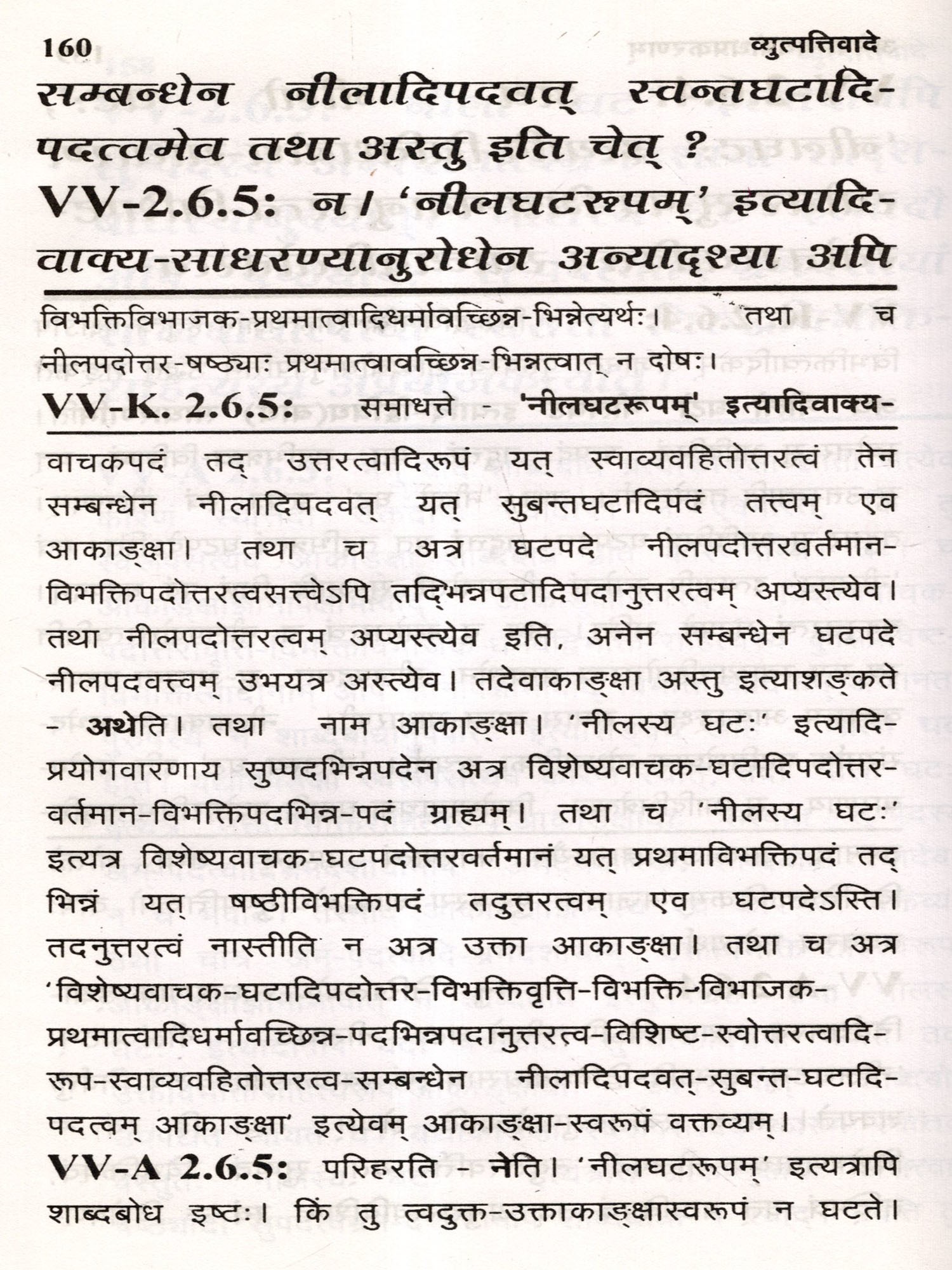 I started intensive svadhyaya on Vyutpattivada while I was at the University of Oxford during 1997-98 on a Commonwealth Academic Staff Visiting Fellowship. On my return to India, I proposed a Major Research Project to UGC, on "Vyutpattivada: A Critical Study" which I got in 2001. The present volume partly fulfils the work as planned for the project. In this edition of Vyutpattivada I have brought out the text only up to Abhedanvaya-prakarana. The text is based on the critical apparatus (forth-coming) with the help of almost all the available editions along with the commentaries Krsnabhațți by Krsnabhatta and Adarsa by Pt. Sudarsana sastri. The other special feature in this edition is that, the paragraphs are marked with paragraph code numbers starting with VV that stands for Vyutpatti-Vada in the text. The three digit numbering system is introduced here to classify the main topic of discussion, the sub-topics and the internal arguments on the issues concerned. After a thorough examination of the commentaries, I am confident that this classification of the text would provide the most suitable arrangement of the arguments of the texts Vyutpattivada.