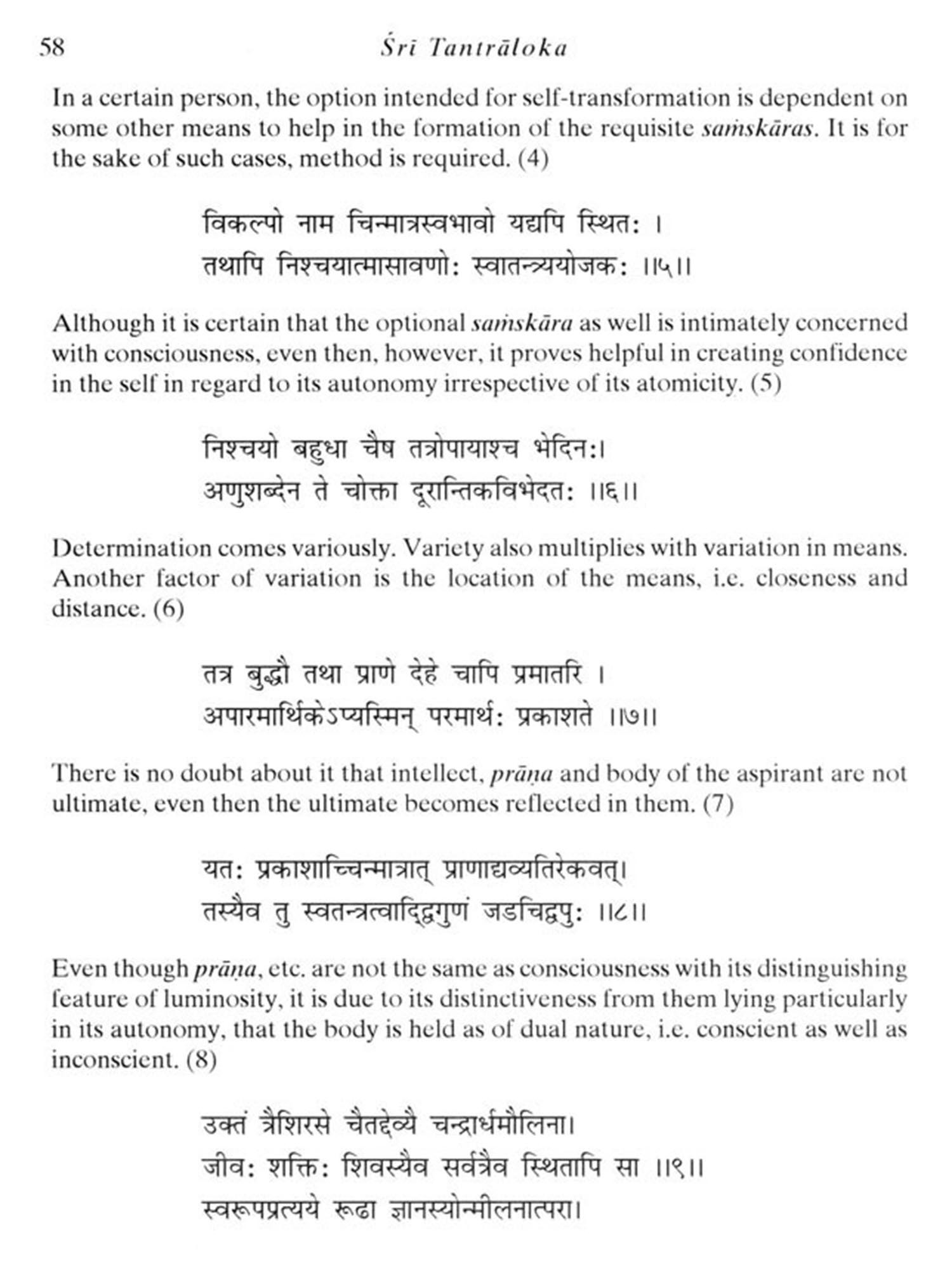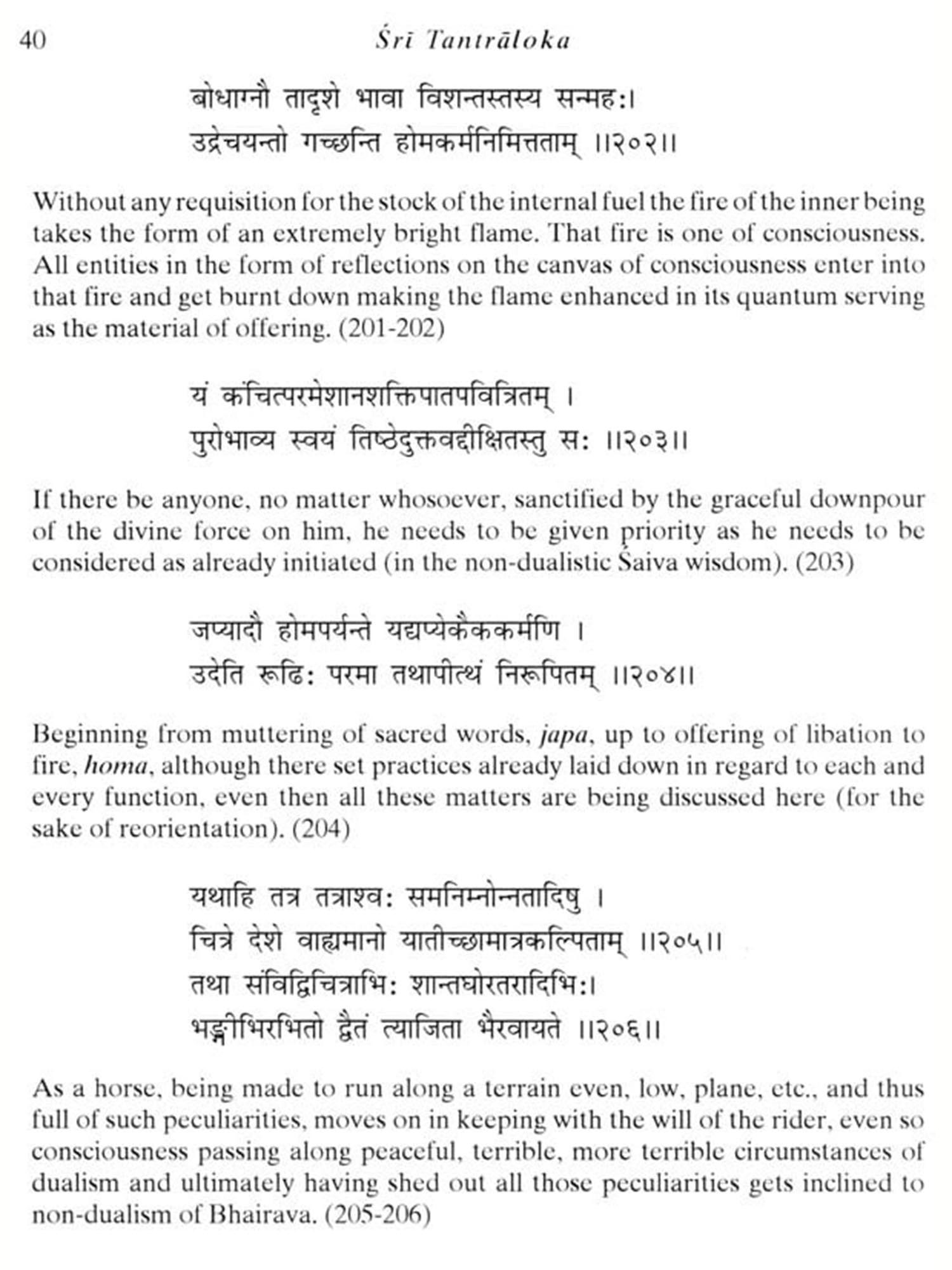 Remarkably enough, this suggestion of the Vedic seer seems to have found out its best recipient in Abhinavagupta and that also in the form of his Tantraloka, as the epitome of wisdom screened out of the Tantras coming out of the mouth of Siva by way of response to the queries of his consort, the Goddess, an embodiment of His own creativity. Very many of the Tantras whose essence has been absorbed in the Tantraloka have disappeared by this time owing to convulsions of history to be not available to us today. On this account, the Tantraloka become all the more important for the humanity as it has embodied in it the invaluable wisdom contained in them by such a genius par excellence as Abhinavagupta, a yogin, tantrika, psychologist, philosopher and aesthetician all combined in him together.