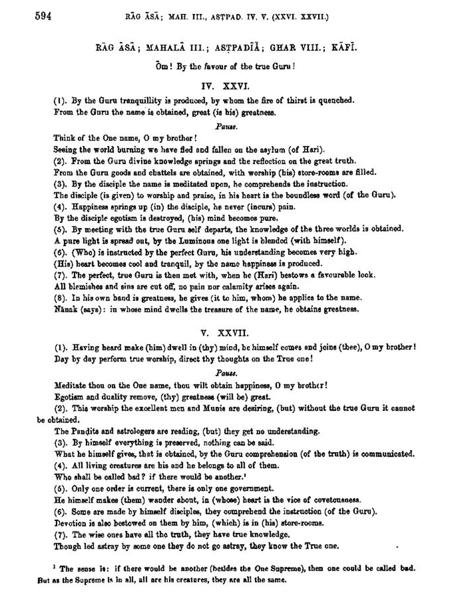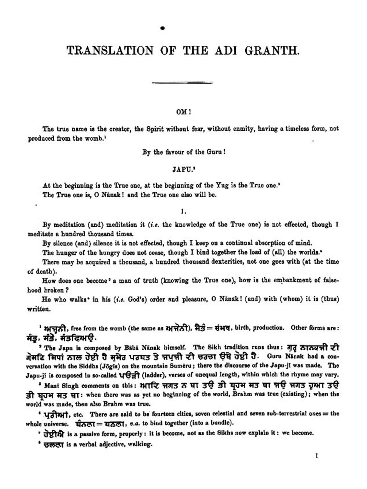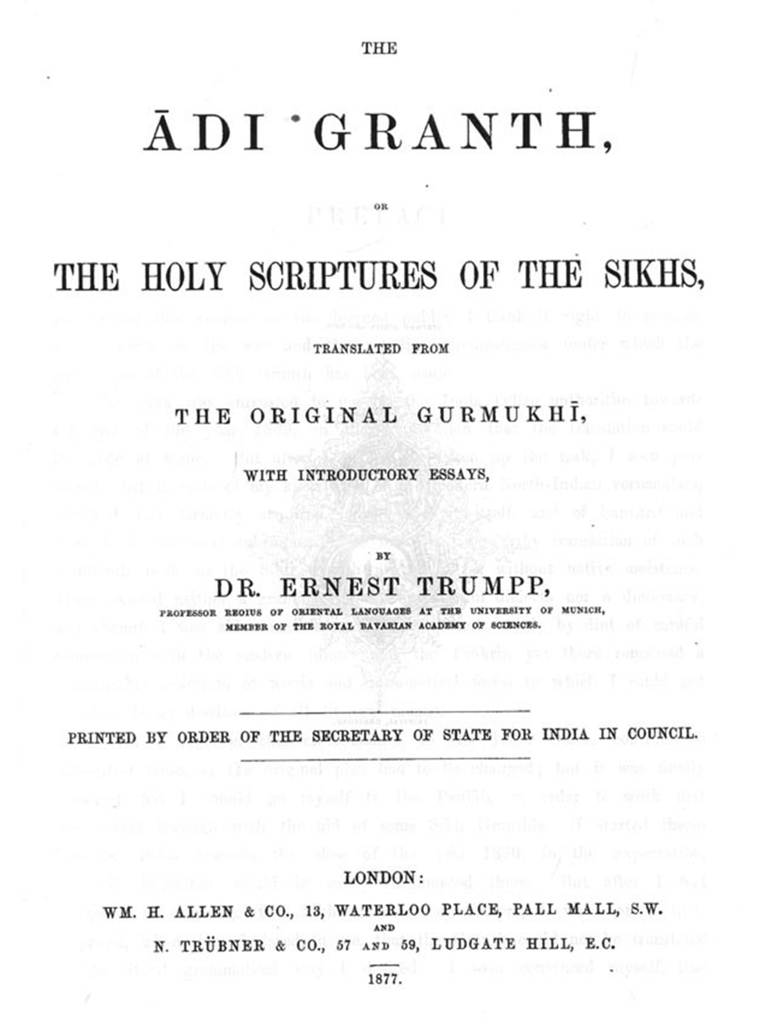 Ernest Trumpp's The Adi Granth is a pioneering work in Sikh studies, 4 offering one of the earliest translations of the Sikh scripture into English. Published in the late 19th century, Trumpp's effort laid the groundwork for future scholars to engage with the Guru Granth Sahib in a Western academic framework. Despite the limitations of his time, his meticulous approach to linguistics and philology provided valuable insights into the structure and language of the Sikh sacred text.