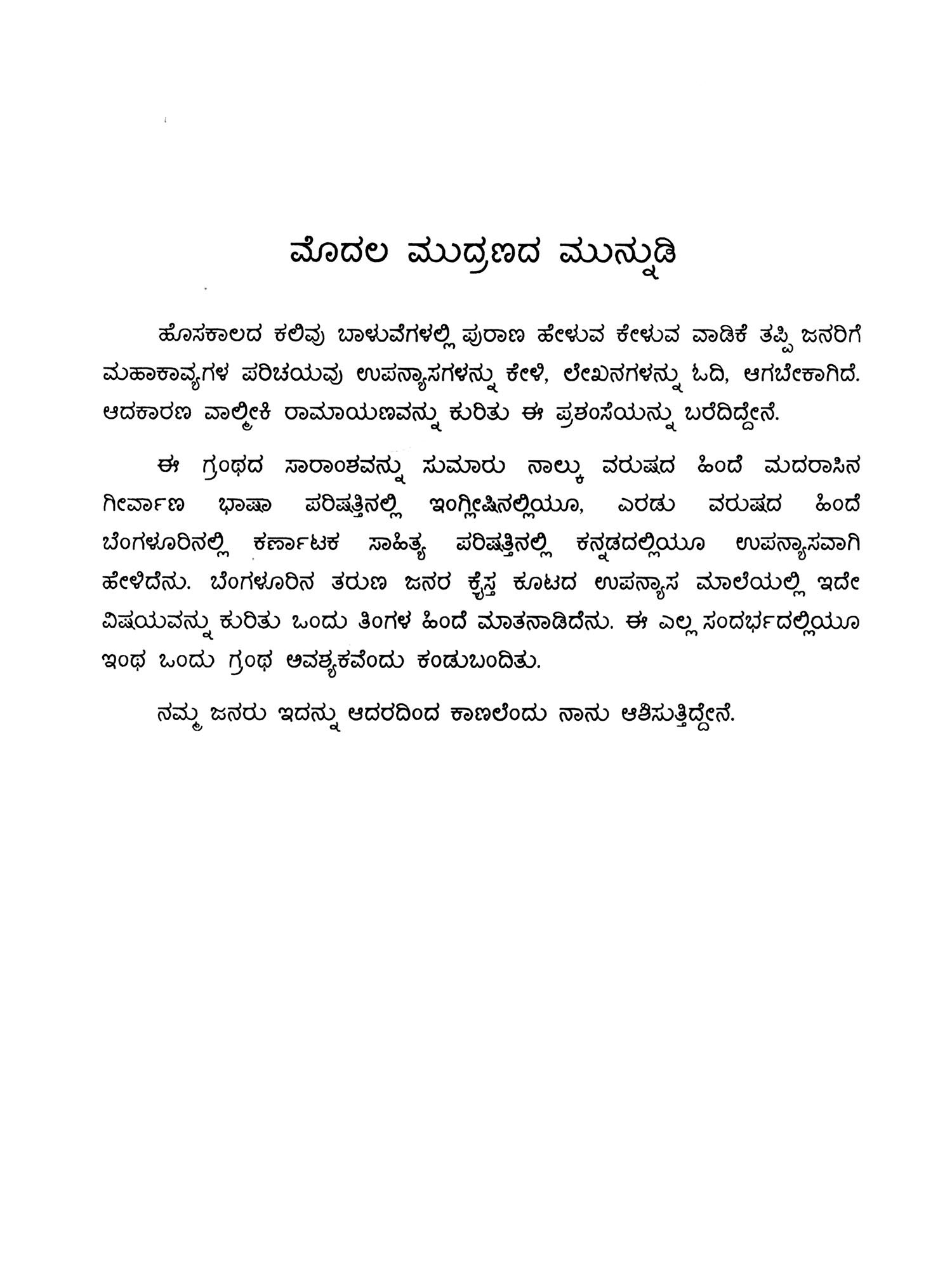 ಸಂಕ್ಷಿಪ್ತ ವಾಲ್ಮೀಕಿ ರಾಮಾಯಣ- Sanksipta Valmiki Ramayana (Kannada)