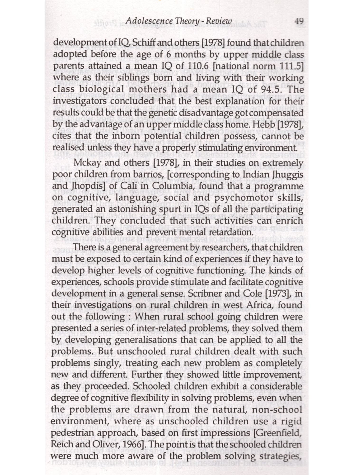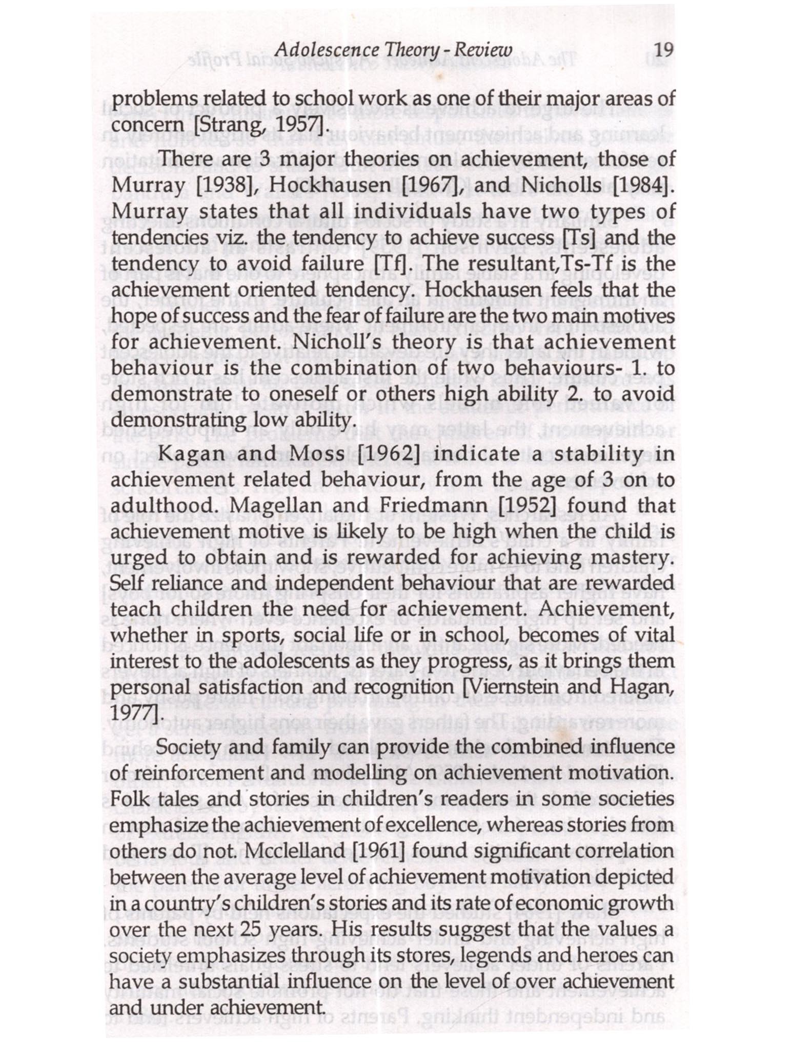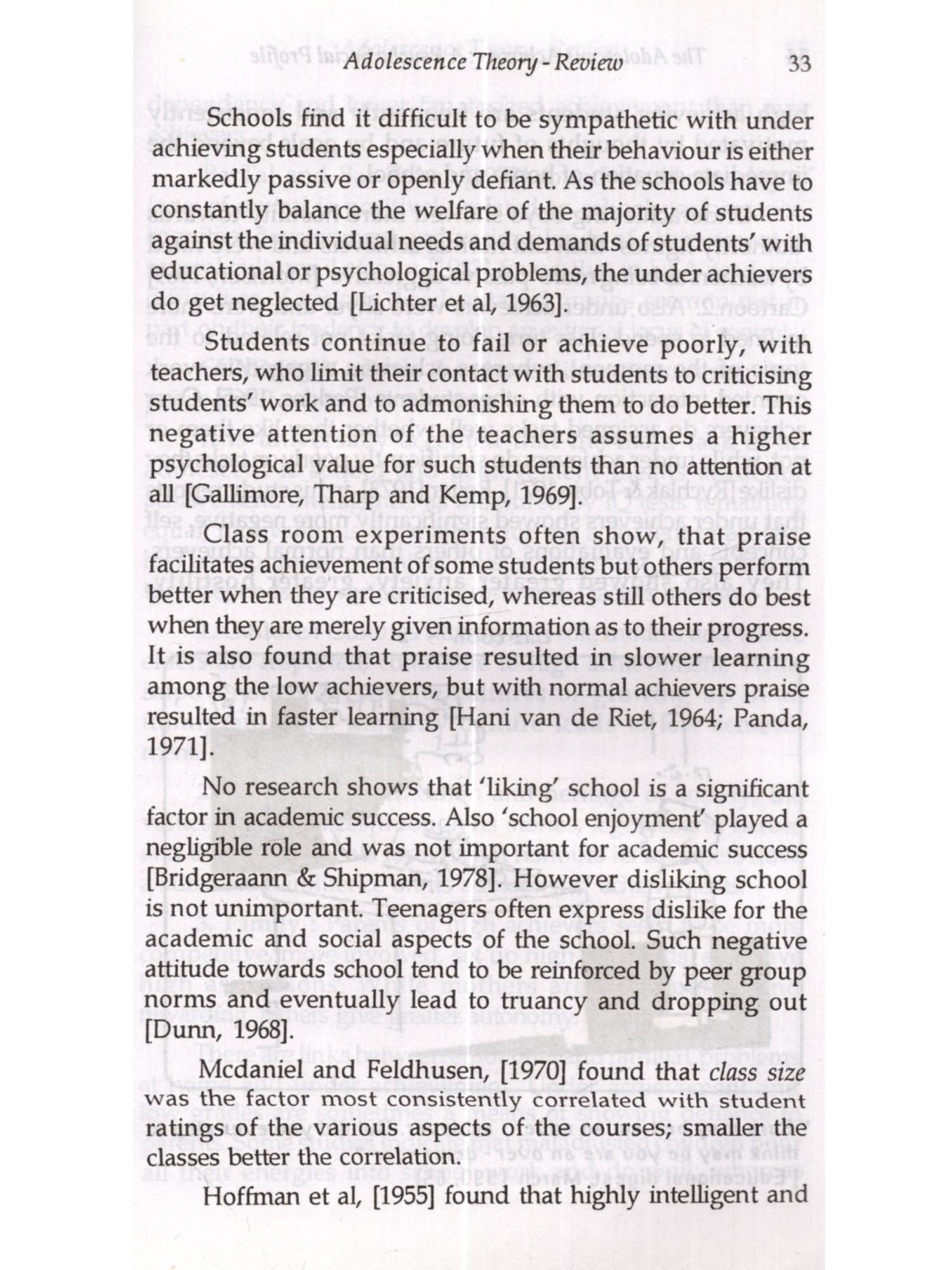 Adolescents standing as they do on the threshold of adult life, form an extremely important part of the society. Their importance is not so much based on their numbers as it is on the fact that their optimum development forms the basis for the wellbeing of society and its progress. Thus to understand them, to appreciate their needs, to provide them with proper avenues for learning, specially suited to their aptitudes so that they blossom to their full potential, becomes a primal task. Fortunately this point is being recognized and accepted by society and the adolescents are being studied from various angles. Academicians and educators are interested in devising special and individualised strategies to capture and hold the adolescent's energies, for school no longer occupies the centre stage in an adolescent's life. It has to face stiff competition from agencies like cinema, TV, neighbourhood gangs, music groups, multiplexes, malls and pub culture, resulting in undesirable stress in vulnerable teenagers. Social psychologists and behavioural scientists, are studying the unique and specific problems of adolescents in order to guide them to become productive members of the society. These scholars make us believe that there are no problem adolescents' but only solvable adolescent problems'. Again, there is this new breed of highly qualified professional market researchers who do extensive surveys on the in culture' of adolescents - their likes and dislikes in clothes, food, movies, music, beauty aids, shoes and reading material. The young are already recognised by the society as a body of affluent consumers and are the target for well directed advertisement blitz attributed to so called modelling effects by psychologists. THE ADOLESCENT YEARS Adolescence can be defined as the period of time during which individuals change from children to adults. It is the period which can be the most volatile and difficult stretch of life, a time that is laden with the possibility of disaster and yet holds the brightest promise for the future. It is a time of paradoxes and torturous ecstasy that caused Shakespeare to write "I would there were no age between sixteen and three and twenty". It revolves around an individual who is not-quite child, not-quite grown up. The landscape of these years is dotted with emotional peaks and valleys whose heights and depths may never be matched in later life. These obstacles confront youth of every culture. They are traversed most readily in traditional societies where centuries of experience have defined clear paths for transition from childhood to adult responsibility, but in modern technological cultures buffeted and bewildered by rapid change, the turmoil and confusion are acute. Rebellious and provocative behaviour, isolation and withdrawal, extreme lethargy and apathy, peculiar ways of dressing, a bizarre and unintelligible language, strange obsessions and fads all these characteristics which will be considered as signs of emotional illness in an adult, are now being accepted, albeit reluctantly and woefully by parents and teachers, as growing pains in teenagers. They are not causes for alarm.