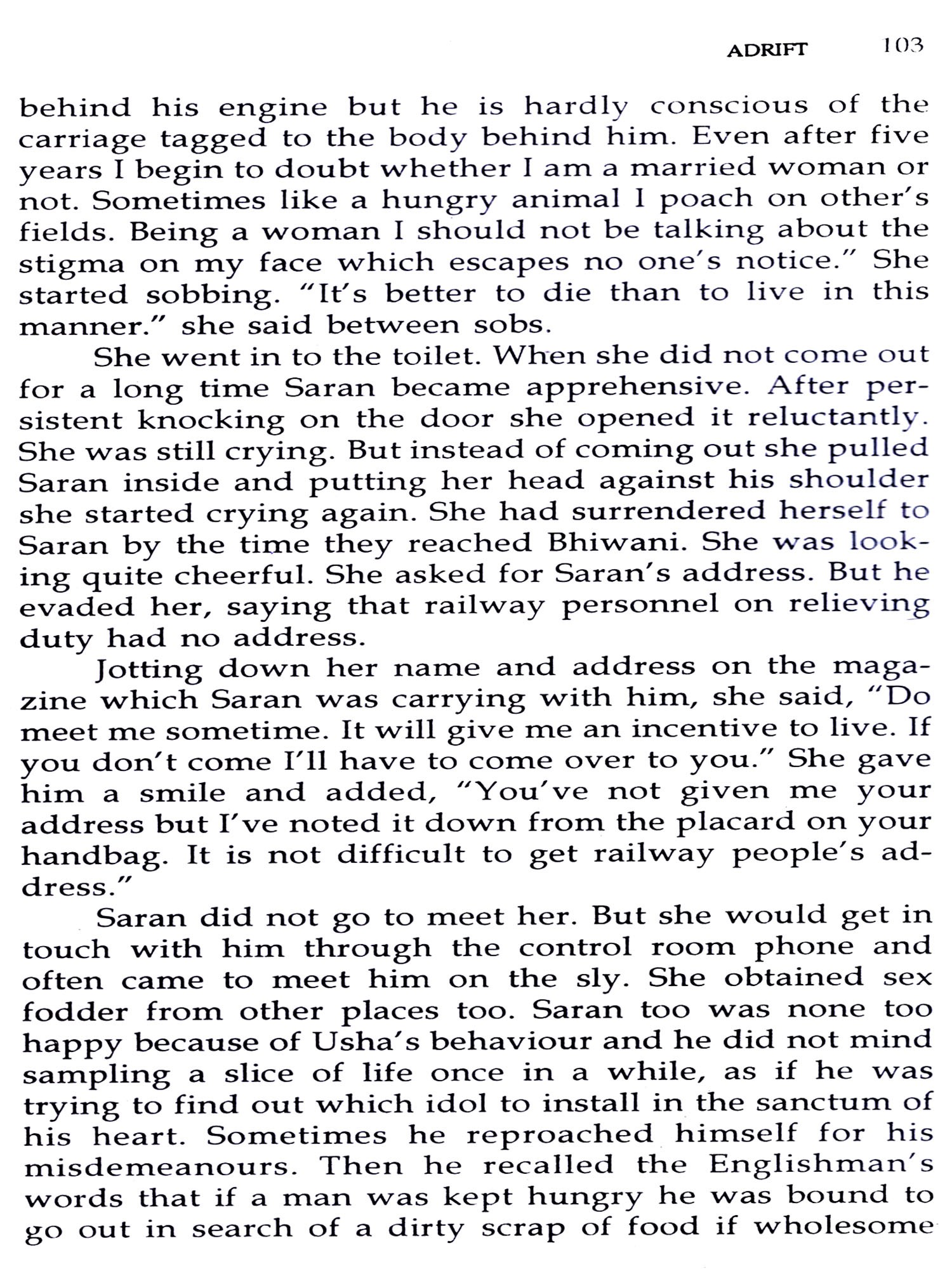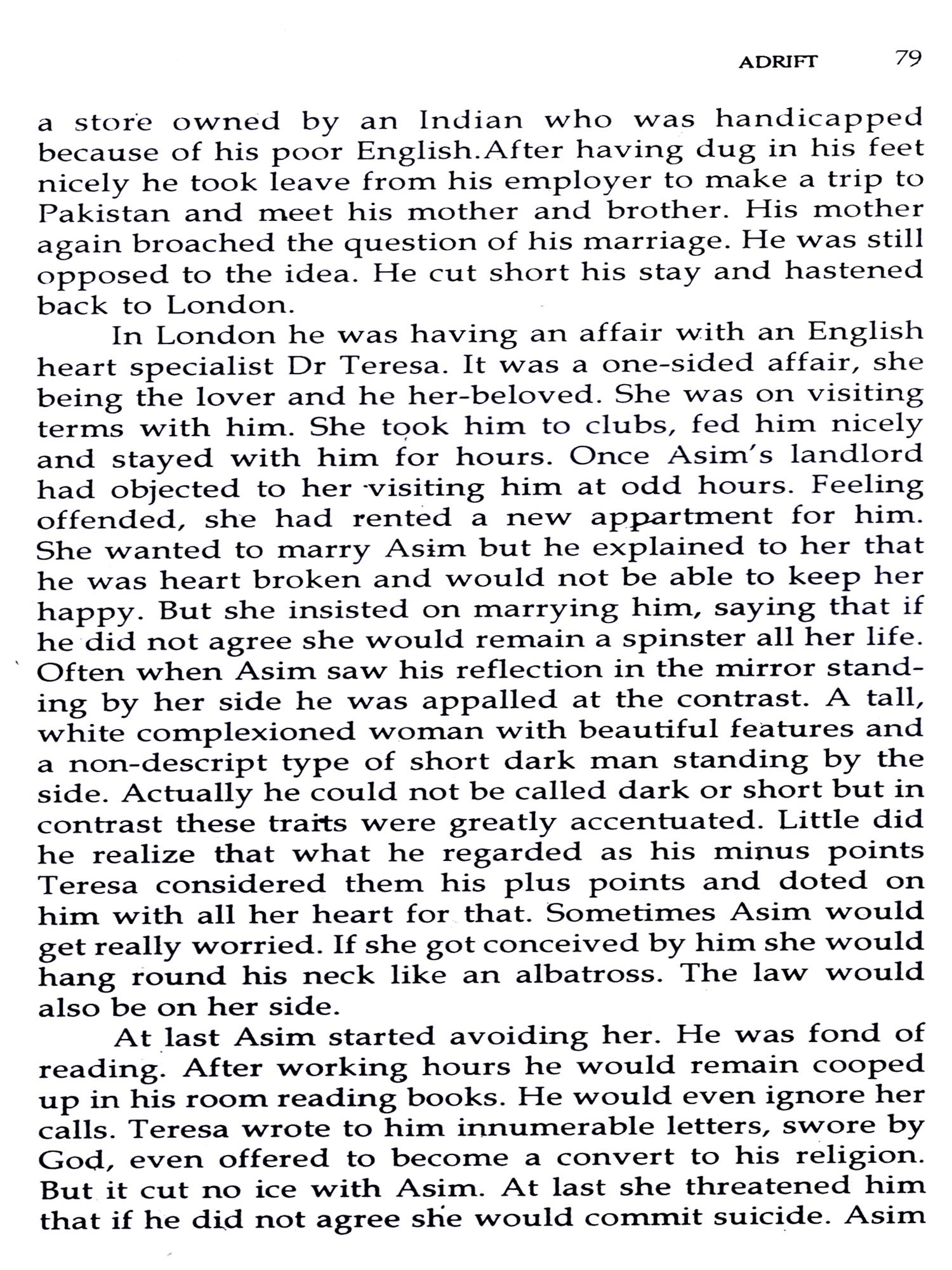 Dislocated by the turn of events following the partition of the subcontinent, the protagonists of the novel, Asim and Saran have a chance meeting at Frankfurt, Germany and are friends in an instant. In taking us through their adventures all over Europe and later to their reunion with Usha and Naima in India, the novel not only depicts the complex social and emotional relationships, but also grapples with the trauma of alienation. Adrift is a human document of charm and beauty. A significant contribution to contemporary Urdu as well as Indian fiction.