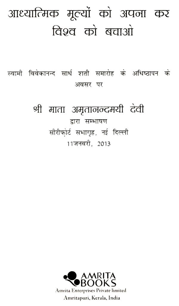 आध्यात्मिक मूल्यों को अपना कर विश्व को बचाओ: Adyatmik Mulyon ko Apnakar Vishwa ko Bachao