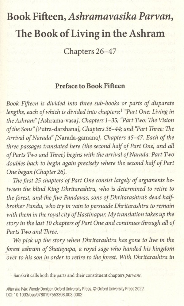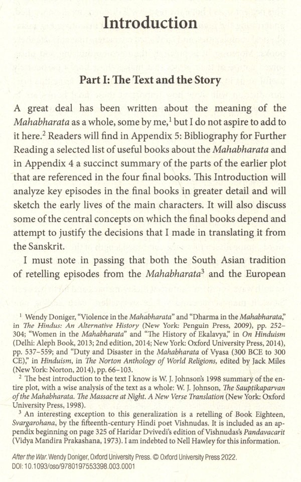 After the War presents a new translation of the final part of the Mahabharata, the great Sanskrit epic poem about a devastating fraternal war. In the aftermath of the great war, the surviving heroes find various deaths, ranging from a drunken debacle in which they kill many of their own comrades to suicide through meditation and, finally, magical transportation to both heaven and hell. Wendy Doniger, a distinguished translator of Sanskrit texts, puts the text into clear, flowing, contemporary prose, with a comprehensive but unintrusive critical apparatus.