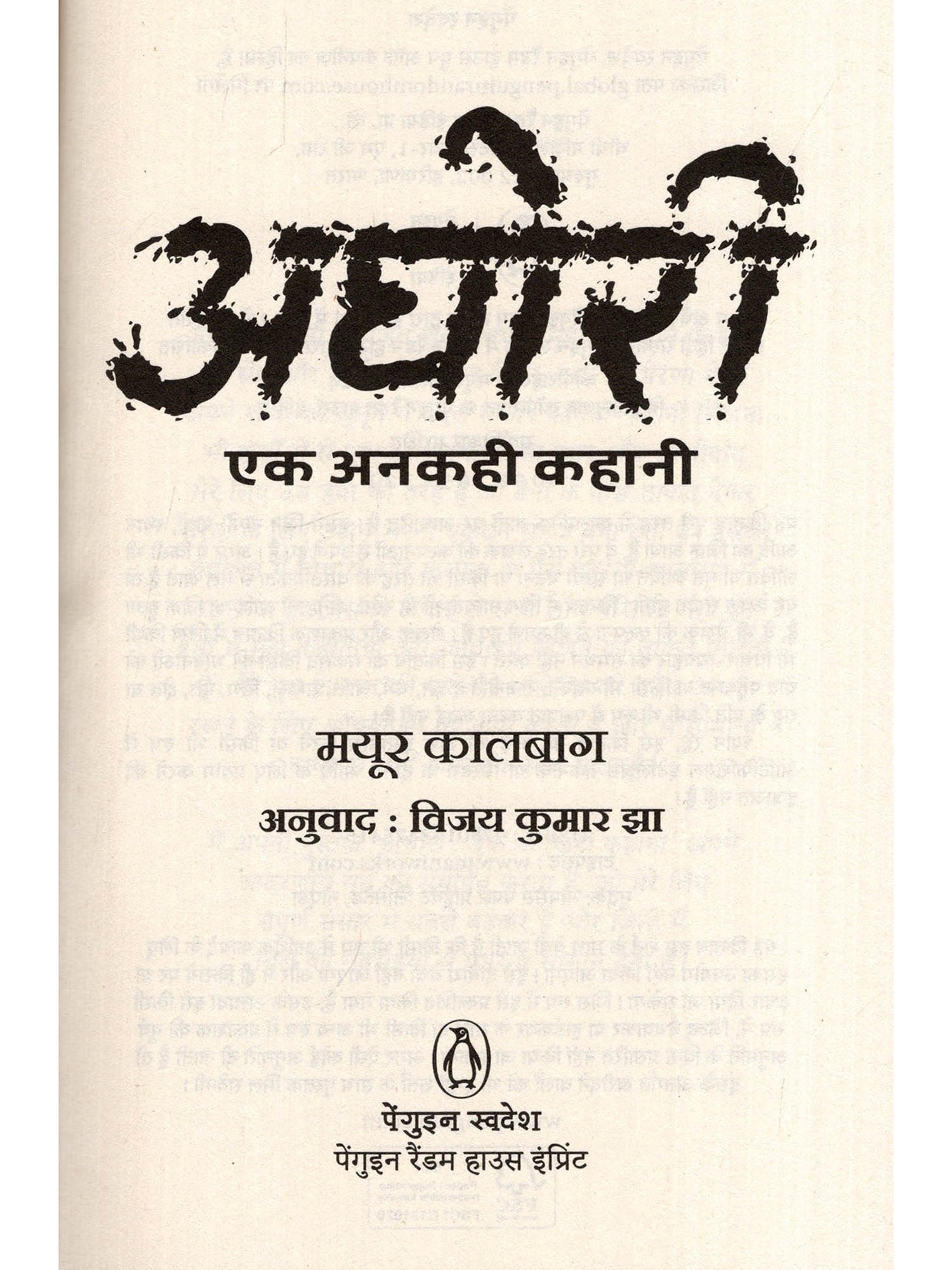 अघोरी : एक अनकही कहानी उन सतरंगी अनुभवों की कहानी है, जिनसे इसका नायक सुबरड्या, जिसे प्यार से सुब्बू बुलाते हैं, दो-चार होता है। सुब्बू के मन में अघोरी साधुओं के बारे में जानने की प्रबल इच्छा ही रोमांच और अनुभव की इस अनोखी यात्रा का आधार है।