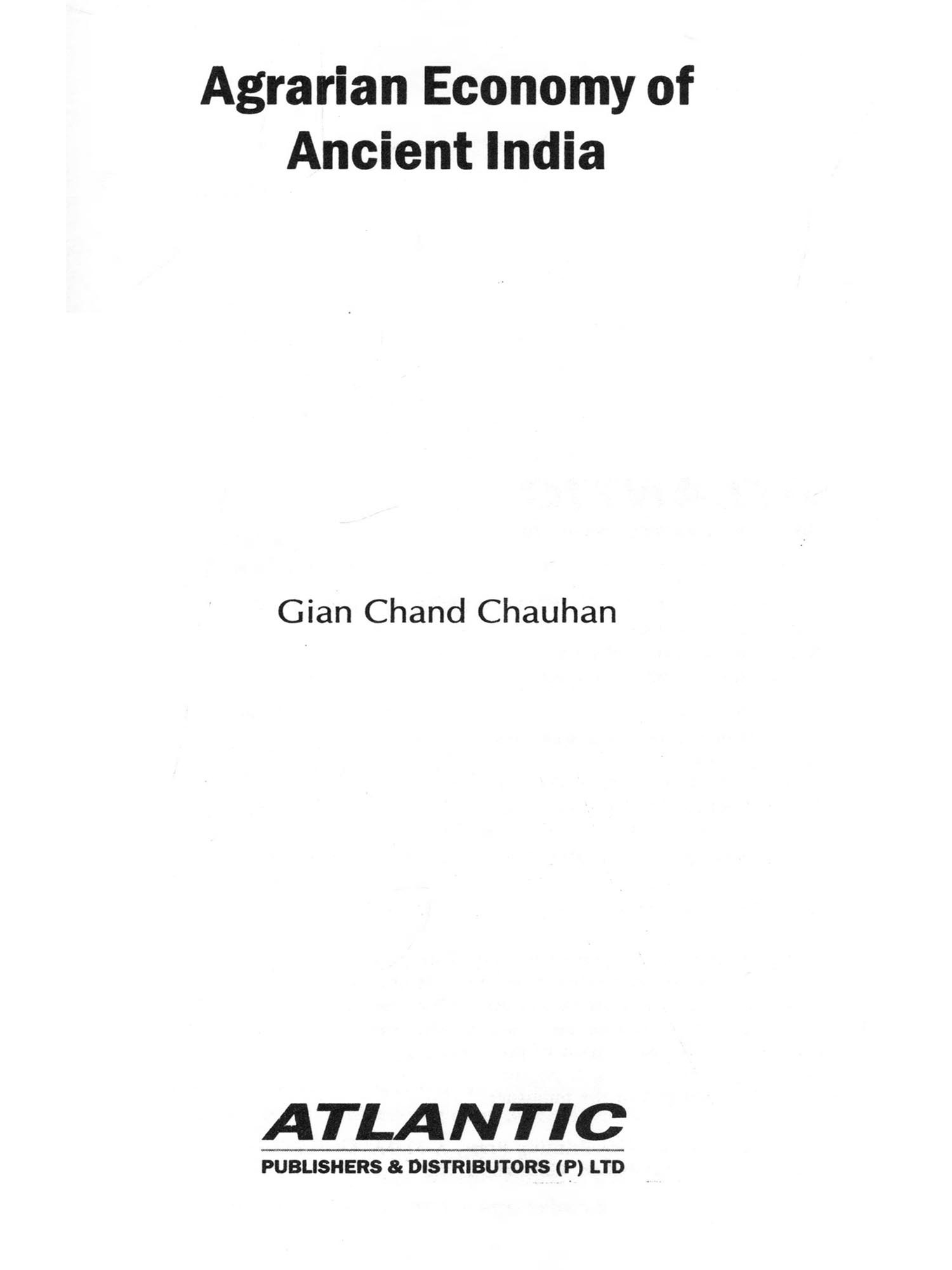 The topic Agrarian Economy of Ancient India (From the earliest times to 1200 C.E), appealed to me and I took it up. But it presented difficulties partly because I am not a Sanskritist and partly because the literature of ancient India is a storehouse of human experience and wisdom gathered in course of ages, and religious in nature. It is so vast and scattered that there is scarce material in them on agrarian economy. The chronology of these traditions, literary as well as the epigraphical, are uncertain. Another difficulty in studying the agrarian economy of ancient India lies in the fact that in spite of many common features, Indian agrarian system has regional variations and differentiations. Moreover, it has intimate linkages with other forms of agrarian economy, like pastoralism, land economy, economic thought and feudal economy, etc. In view of paucity of early works on agrarian economy, along with the predominance of official orientation of literary and epigraphical traditions and amorphous nature and regional variations, it is an onerous job to present the agrarian economy of ancient India in its true perspective. The present work is a synthesis and summation of existing knowledge on the agrarian economy of ancient India on the combined bases of archaeological and literary traditions of ancient India.