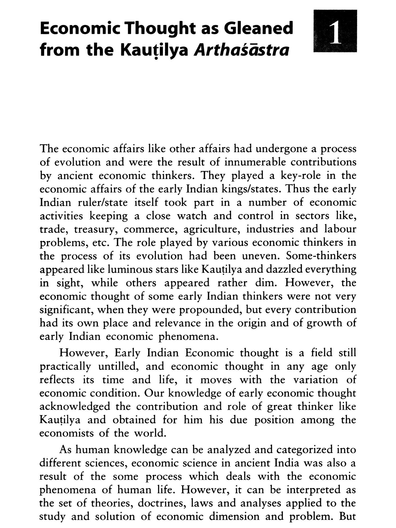 However, ancient Indian economic thought is a field still practically untilled, and economic thought in any age only reflects its time and life. It moves with the variation of economic condition. The economic interpretation of our past economy is one of the first fruits of the study of early Indian economic thought which enabled us to visualize not only the life of our ancestors but also helped us to recognize and interpret even the purpose of their everyday economic activities and affairs. Our knowledge of early economic thought acknowledged the contribution and role of great thinker like Kautilya and established his due position among the economists of the world.