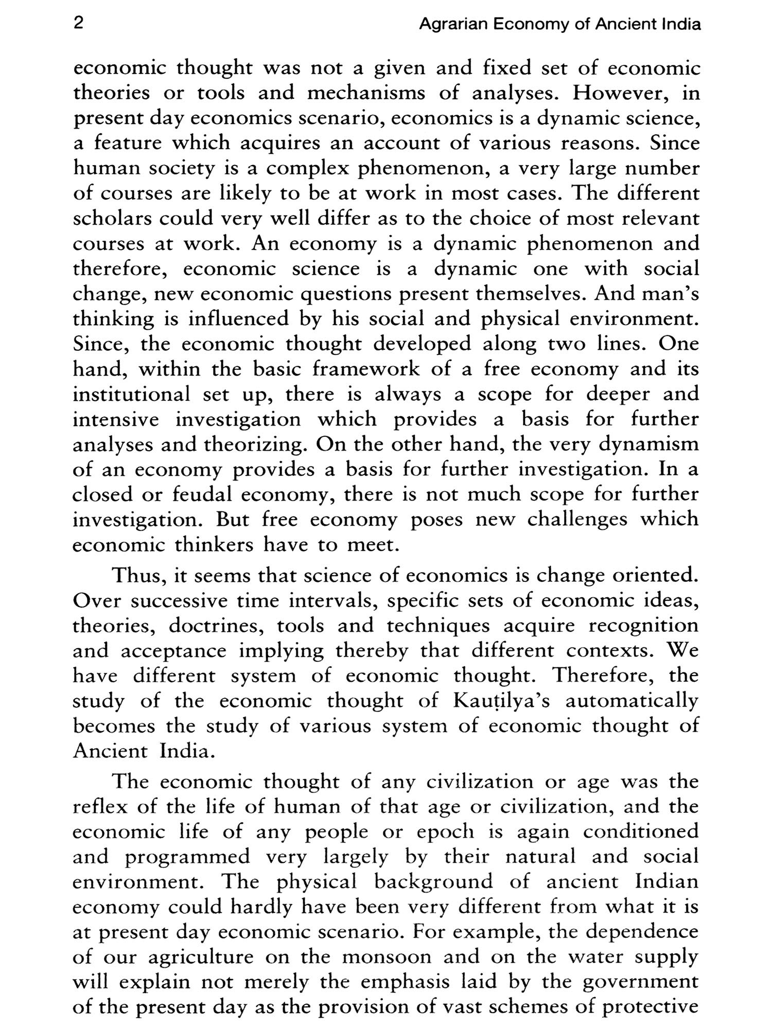The economic thought of any civilization or age was the reflex of the life of humans of that age or civilization, and the economic life of any people or epoch is again conditioned and programmed very largely by their natural and social environment. The physical background of ancient Indian agrarian economy could hardly have been very different from what it is in the present-day economic scenario.