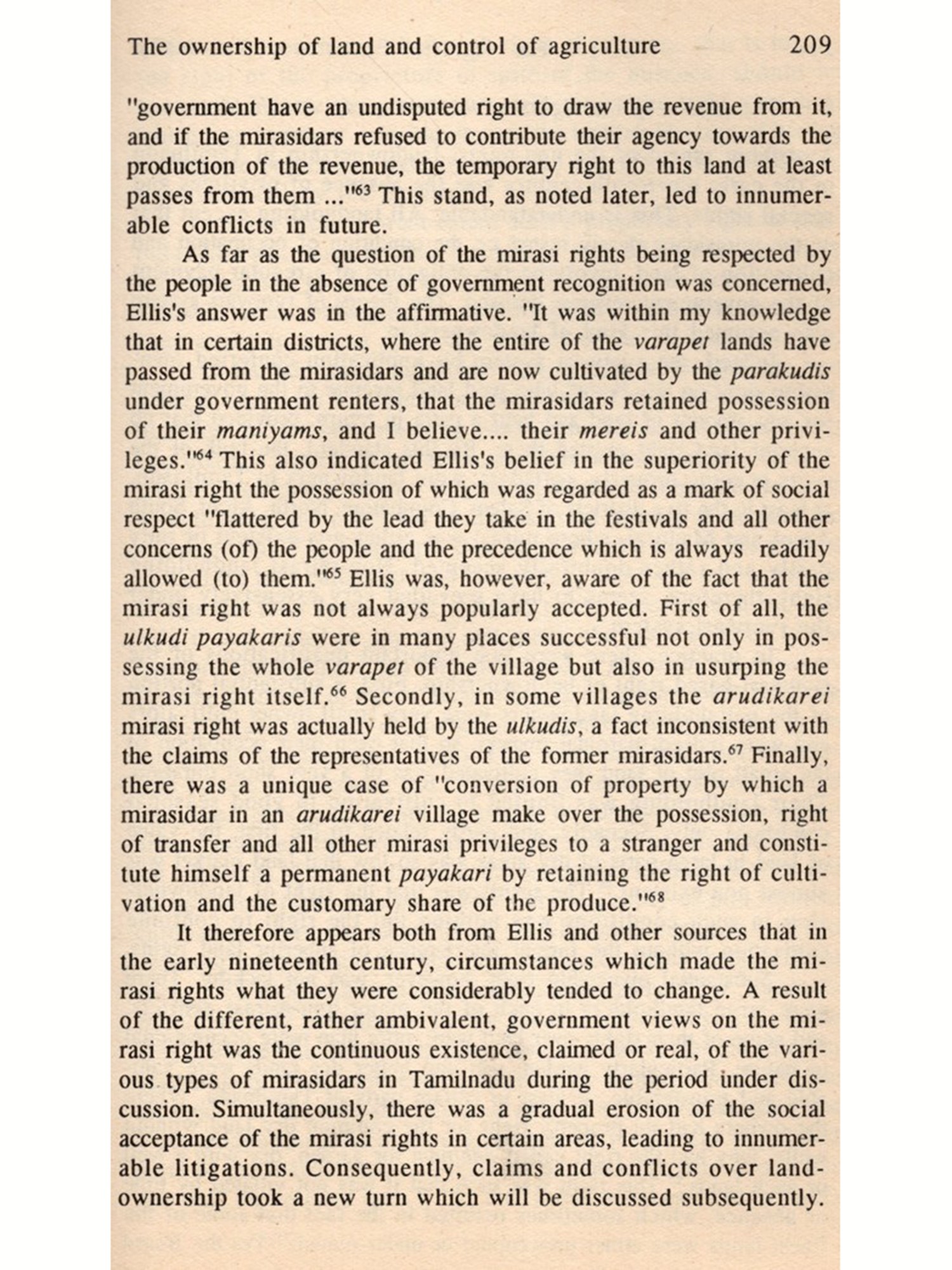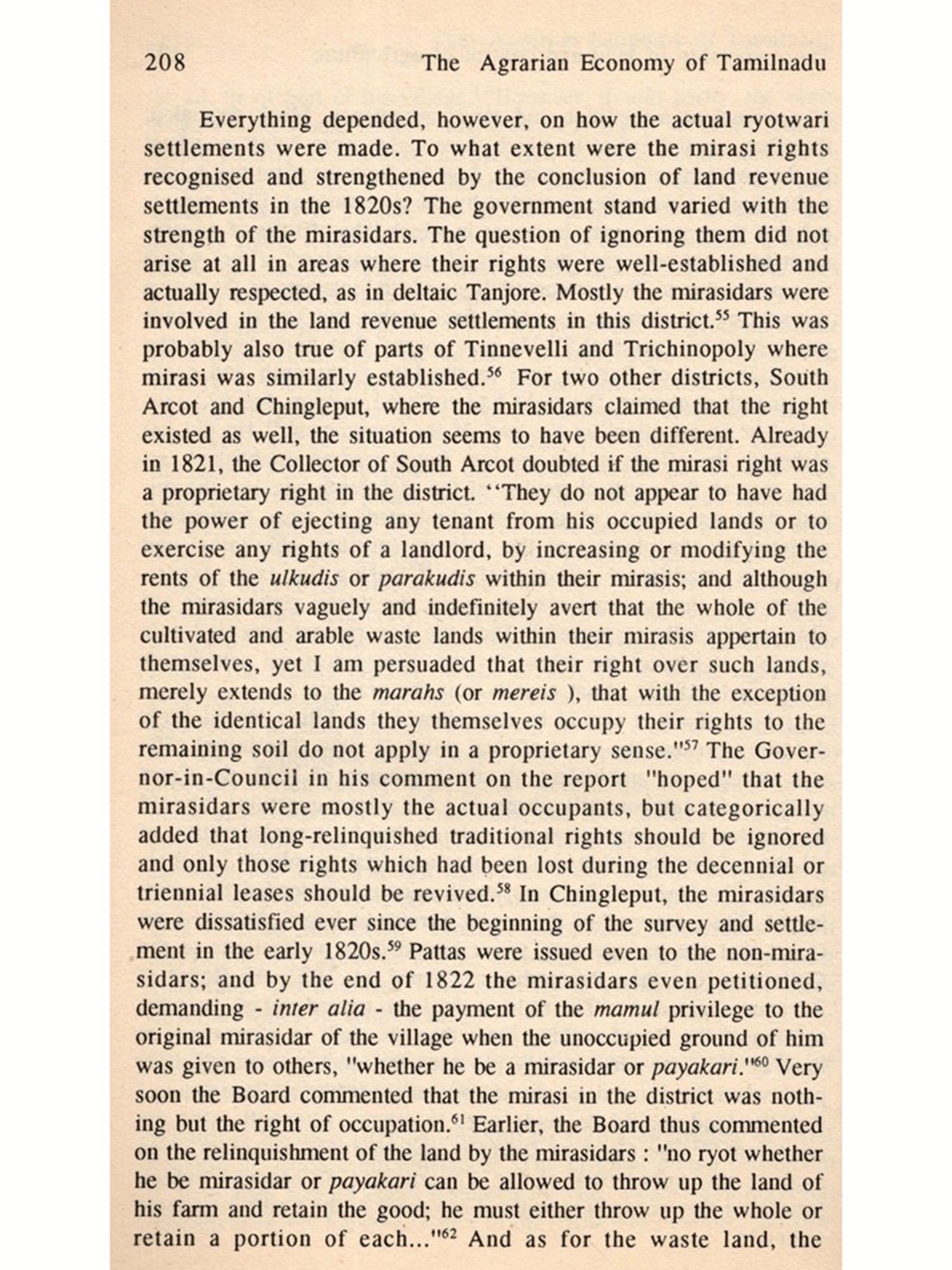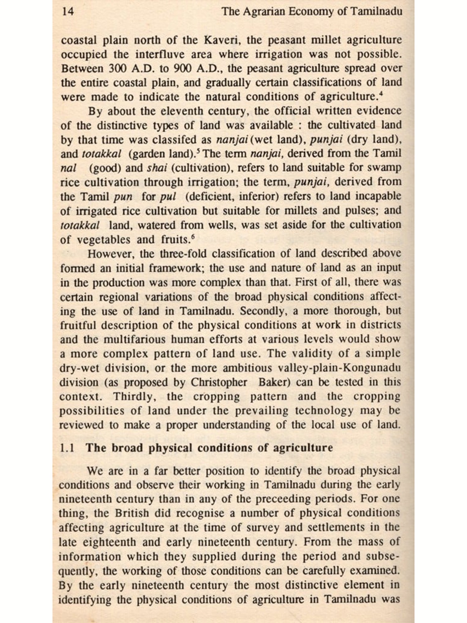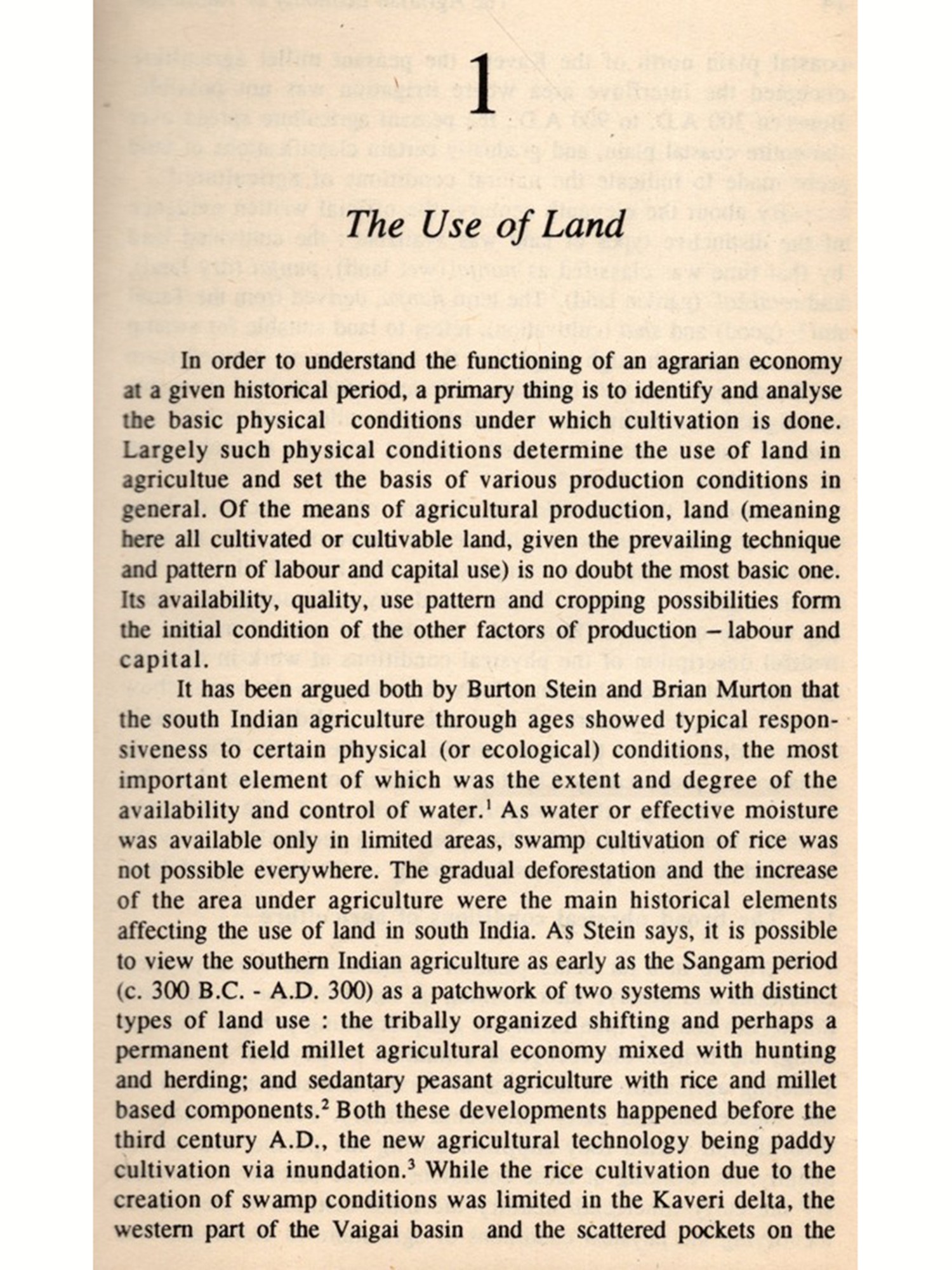I feel hesitant to write about an academic interest which has been with me in various ways for about a decade and a half, despite many changes in the world of historical scholarship. I began with an intense feeling for agrarian history, to research about a region academically least covered and personally unfamiliar to myself. I thought much could be achieved if considerable quantitative and qualitative data about some of the crucial aspects of agrarian life can be collected, related to and interpretated. In the process I could possibly highlight some, became more familier to the region but at the same time got exposed to complexities unforeseen altogether. In the years that followed, my academic interest underwent significant changes, to pass through periods of involved research work, distraction and simple inaction, by dint of rethinking, redirection and revision. I now understand that my interest is a long-drawn-out process, leading me to a different cultural milieu, attendant with its joy and pangs, success and failures, my very desire to build grand projects and the limitation of my ability. The Agrarian Ecomomy of Tamilnadu is a half-way house between my present imagination and my initial expectation in research.