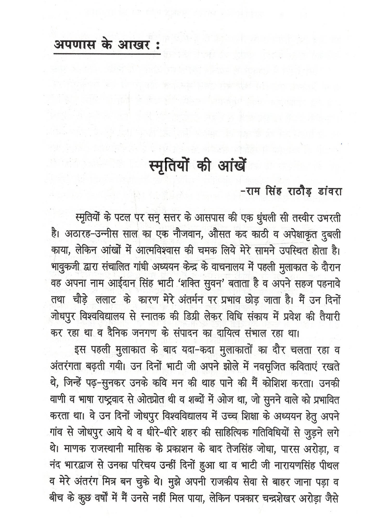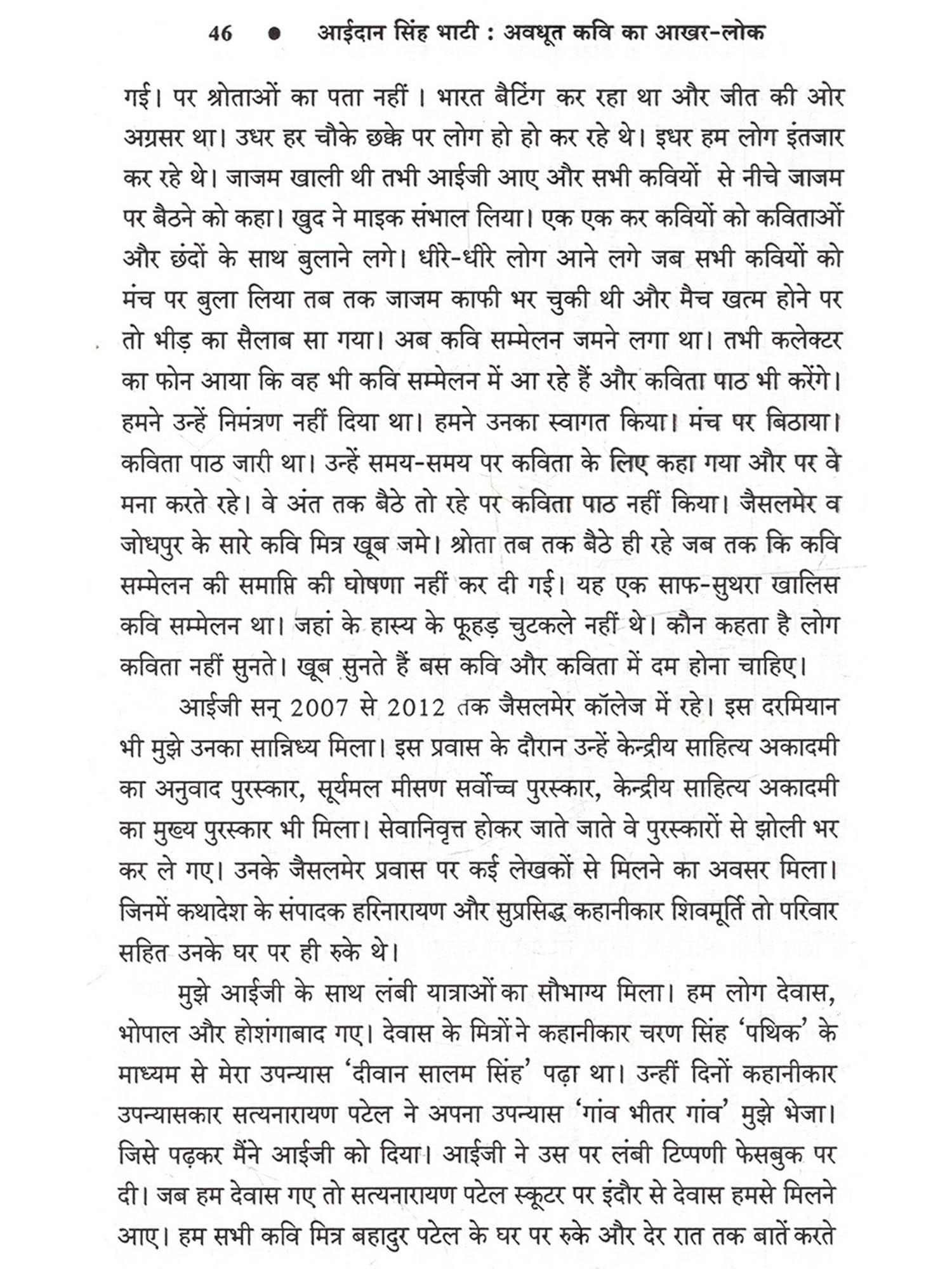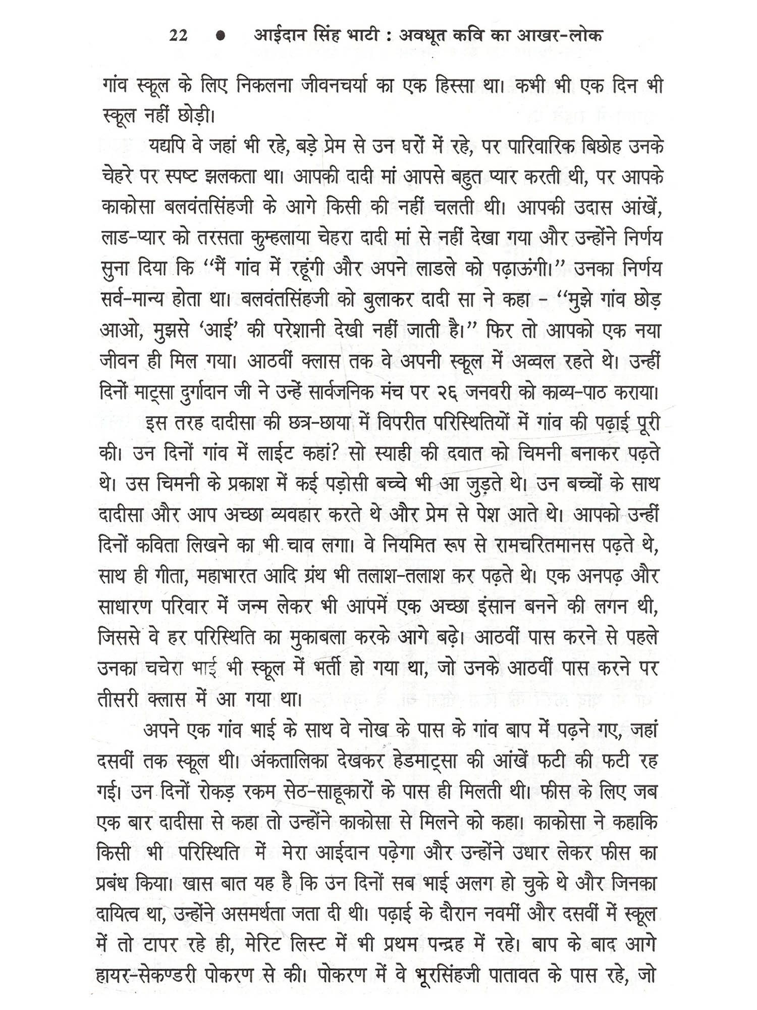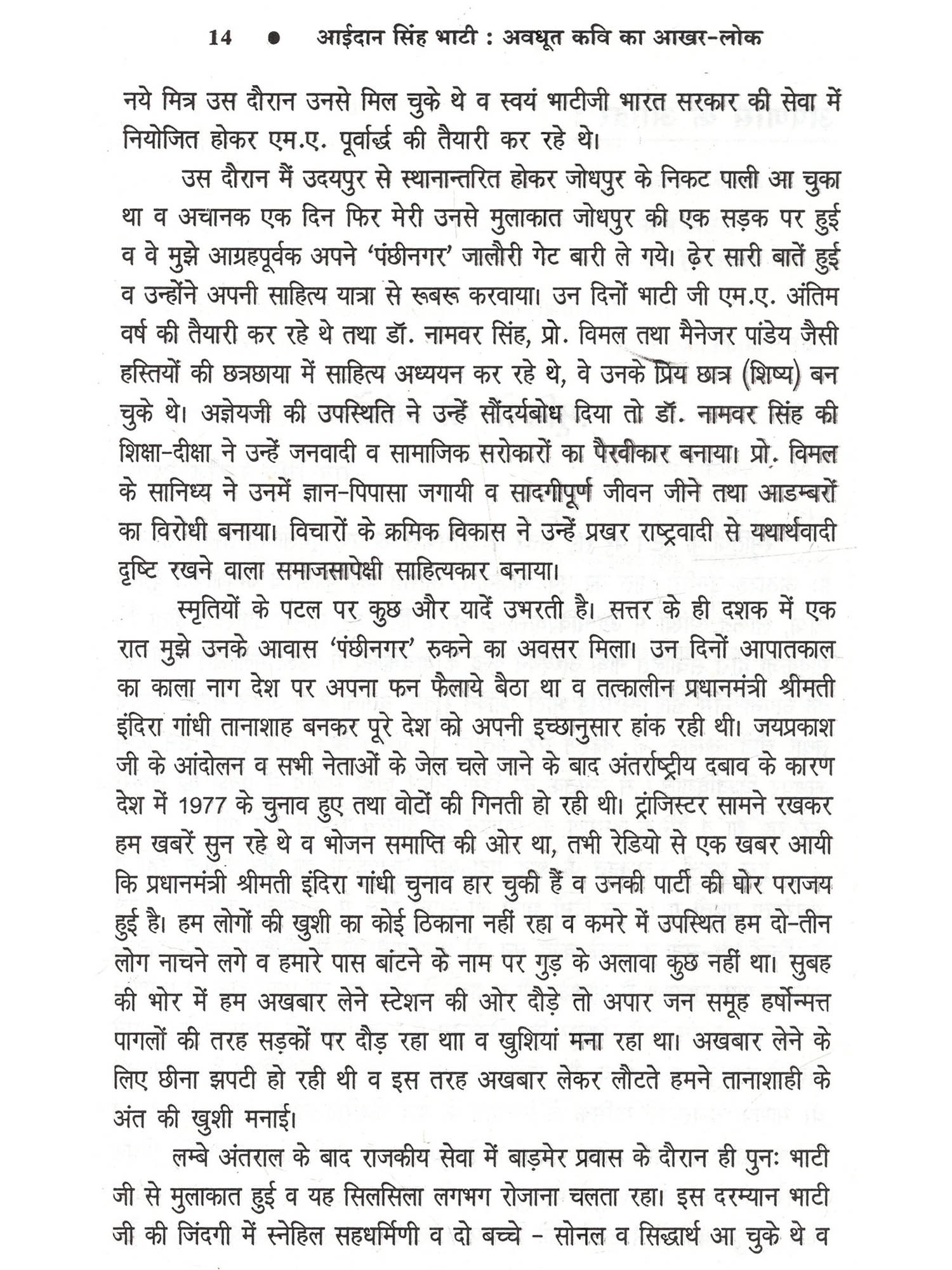 भाषा हमारी आत्मा है, हमारा हथियार है, माध्यम है, इसलिए भाषा से ही परम्परा बोध मिलता है और भाषा ही प्रतिरोध को जन्म देती है। हमारी लोकभाषाओं ने इस संबंध में महत्त्वपूर्ण कार्य किया है किन्तु अब गांव भी बदल रहे हैं और वहां अच्छी राजस्थानी, भोजपुरी, मैथिली नहीं रही है। लोकभाषाओं के साहित्यकारों का यह दायित्व है कि लोक की आत्मा लोकभाषा के सार्थक पक्षों को पहचानें और राजनीति की अराजकता के विरुद्ध उसे प्रतिरोध की ताकत के रूप में इस्तेमाल करें। आईदान सिंह भाटी की कविताओं में मुझे लोकभाषा के इसी सार्थक व प्रतिरोधी रूप की झलक मिलती है। वे स्थानिकता, परम्परा और प्रतिरोध के सौन्दर्यबोध के कवि हैं।