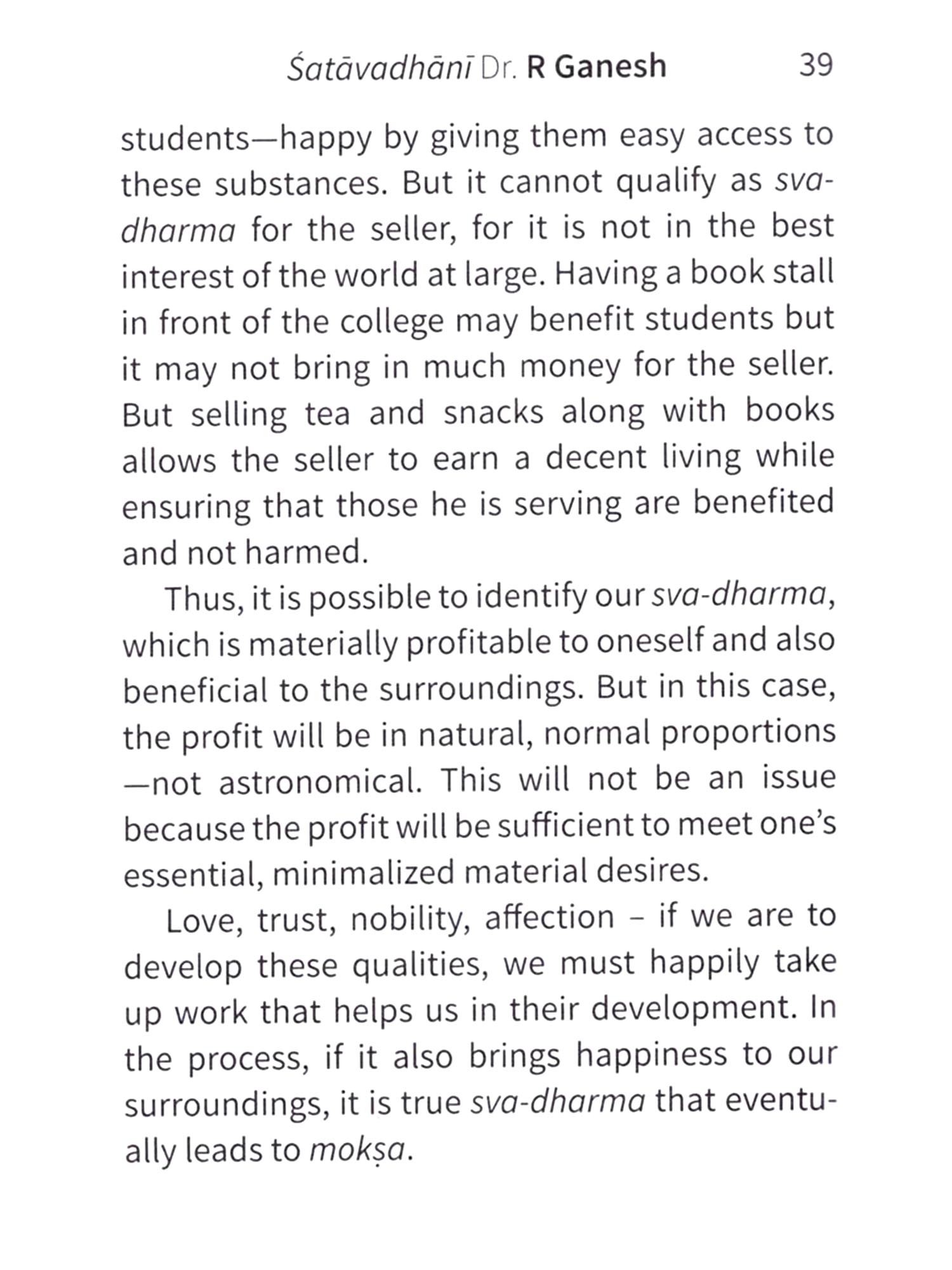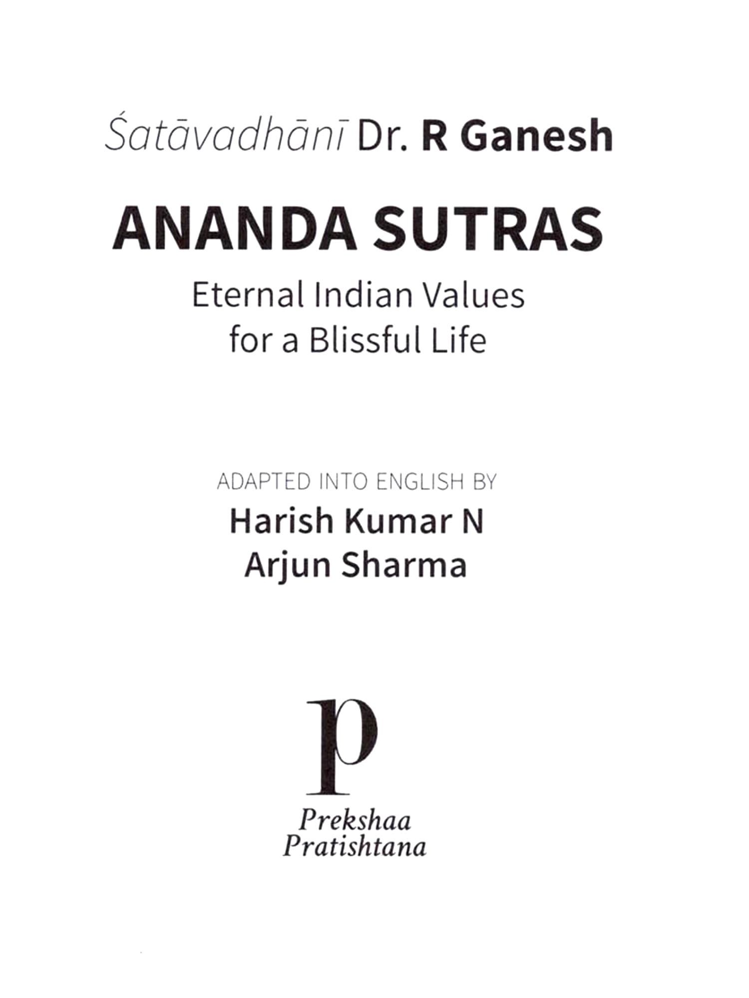 This little book captures the essence of sata-avadhānī Dr. R Ganesh's hugely popular lecture series, 'Indian Values for a Happy Life,' in which he simplifies profound ideas, making them accessible and actionable in our everyday lives. Through five straightforward sutras (formulae) the readers will traverse the tricky path to lasting Bliss. This English adaptation, undertaken by two gifted comedians/playwrights, is intended to be an easy introduction into the secrets for a happier life.