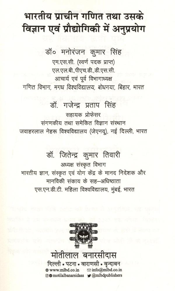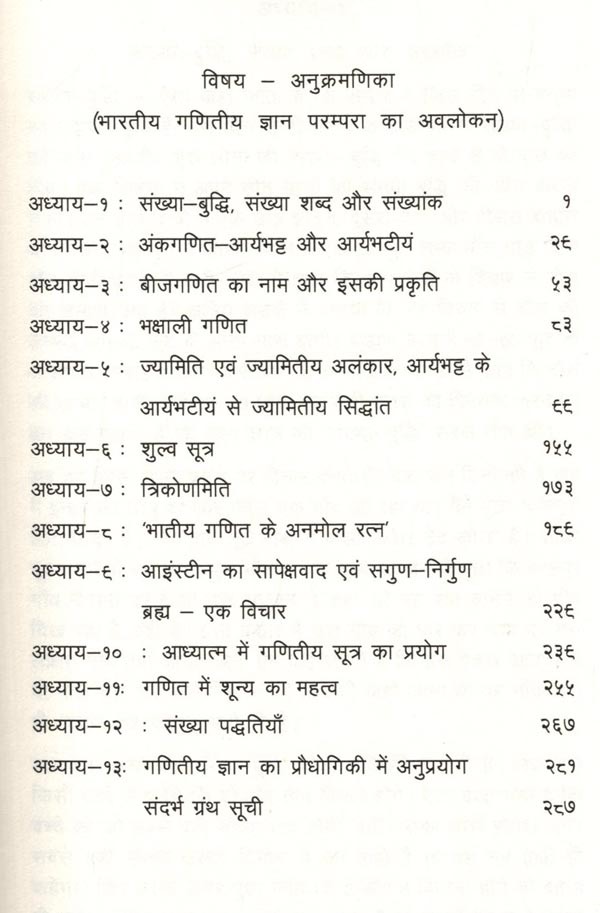 यह पुस्तक भारतीय गणितीय ज्ञान परंपरा का विस्तृत अध्ययन प्रस्तुत करती है। इसमें आर्यभट्ट सहित प्राचीन गणितज्ञों के योगदान अंकगणित, बीजगणित, ज्यामिति, शुल्व सूत्र, भक्षाली गणित और त्रिकोणमिति जैसे विषयों पर गहन विश्लेषण है। पुस्तक शून्य की खोज, संख्या पद्धतियों, गणित के आध्यात्मिक एवं दार्शनिक पहलूओं के साथ-साथ आइंस्टीन के सापेक्षवाद और भारतीय सगुण-निर्गुण ब्रह्म की अवधारणा पर एक चिन्तन भी प्रस्तुत करती है। यह प्राचीन गणित के सिद्धांतों को आधुनिक विज्ञान एवं तकनीक से जोड़कर उनकी प्रासंगिकता को रेखांकित करती हैं। यह शोधकर्ता, विद्यार्थी और गणित के इतिहास में रुचि रखने वालों के लिए अत्यंत उपयोगी संसाधन है।