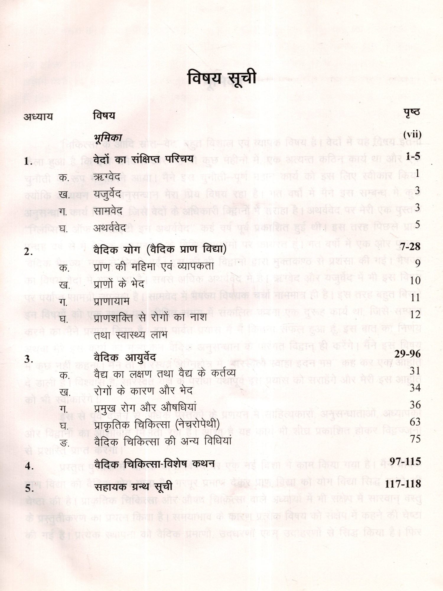 \प्रस्तुत पुस्तक में वैदिक योग विषय पर एक नई दिशा में काम किया गया है। मैंने वैदिक प्राण विद्या को वैदिक योग माना है। भरपूर प्रमाण देकर प्राण विद्या को योग विद्या सिद्ध करने की चेष्टा की है। प्राकृतिक चिकित्सा और औषध चिकित्सा वाले अध्यायों में भी संक्षेप में सारवान् वस्तु के प्रस्तुतीकरण का प्रयत्न किया है। समयाभाव के कारण प्रत्येक विषय को संक्षेप में कहने की चेष्टा की गई है। प्रत्येक स्थापना को वैदिक प्रमाणों, उद्धरणों एवम् उदाहरणों से सिद्ध किया है। फिर भी जहां कहीं प्रमादवश वा अज्ञानवश स्रवलित हुआ लगू, विशेषज्ञों से अनुरोध है कि तत्तत् स्वलित स्थानों से मुझे अवगत कराएं, जिससे भविष्य में सुधार किया जा सके।