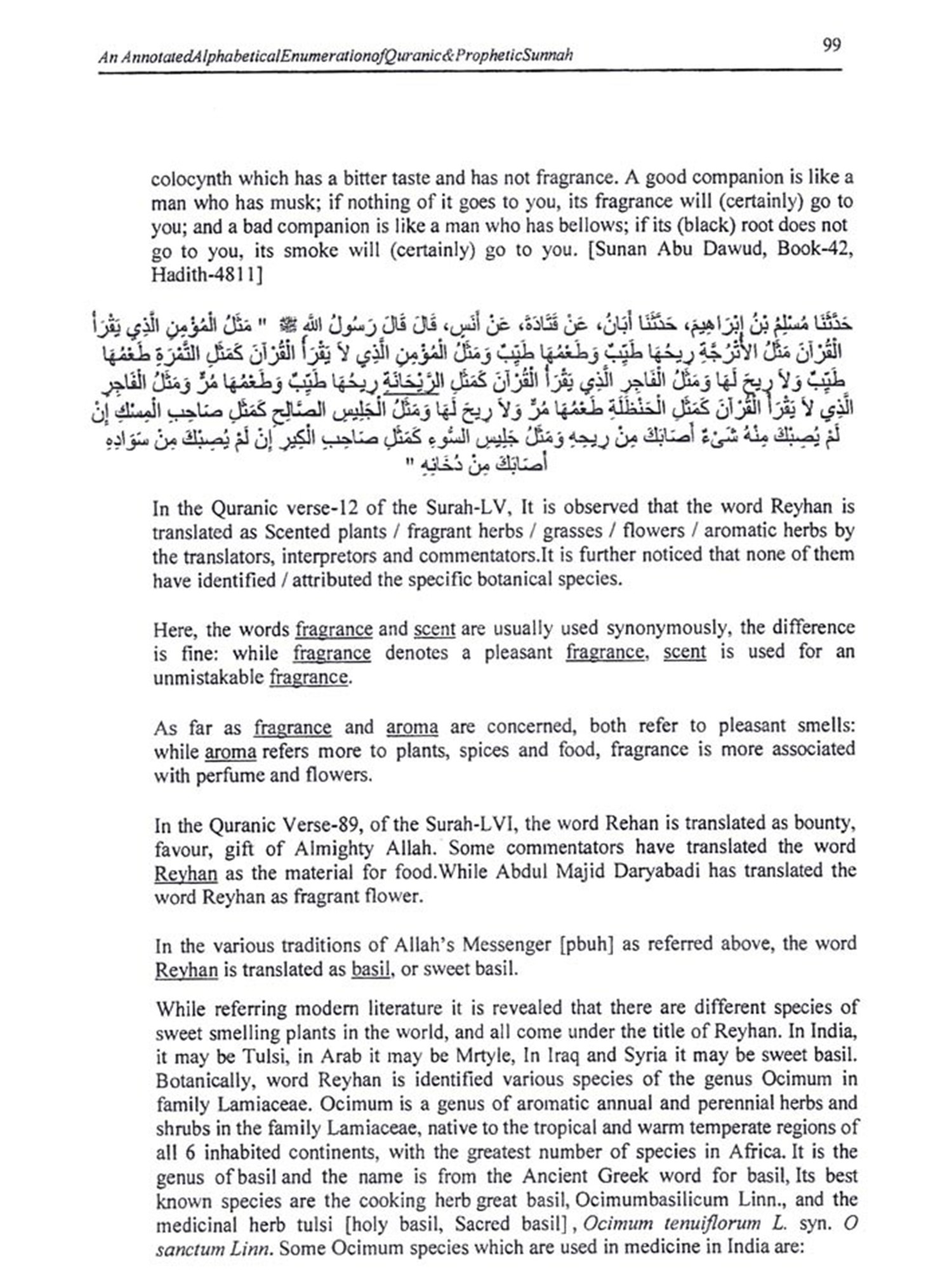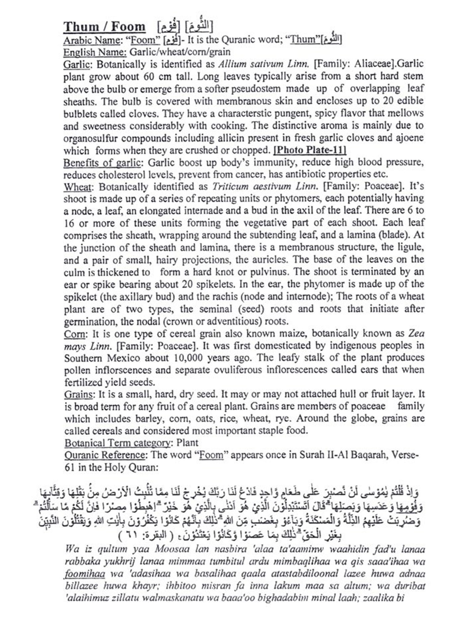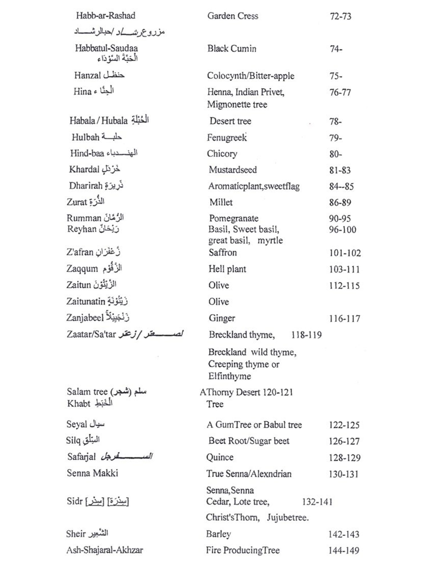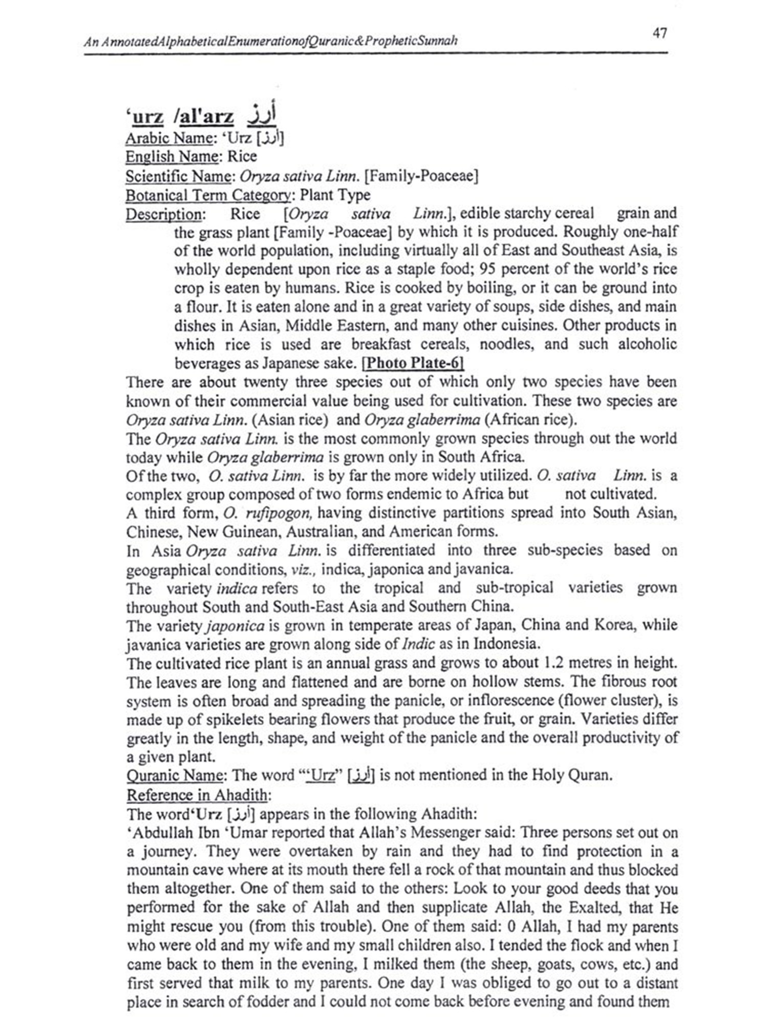 An Annotated Alphabetical Enumeration of Quranic & Prophetic/Sunnah Plants, Their Parts & Related Terms