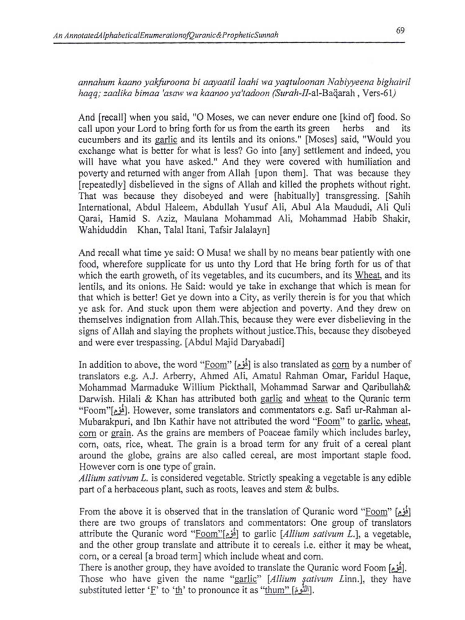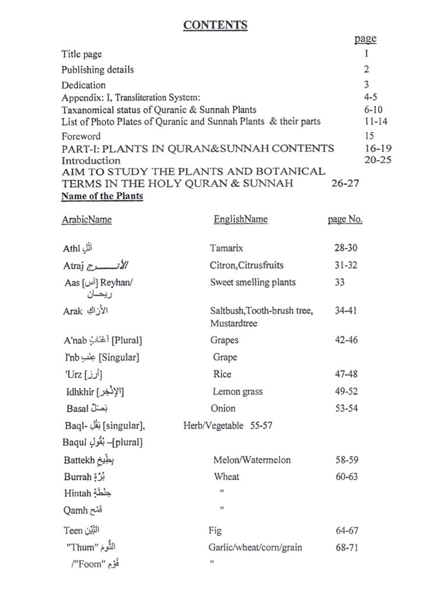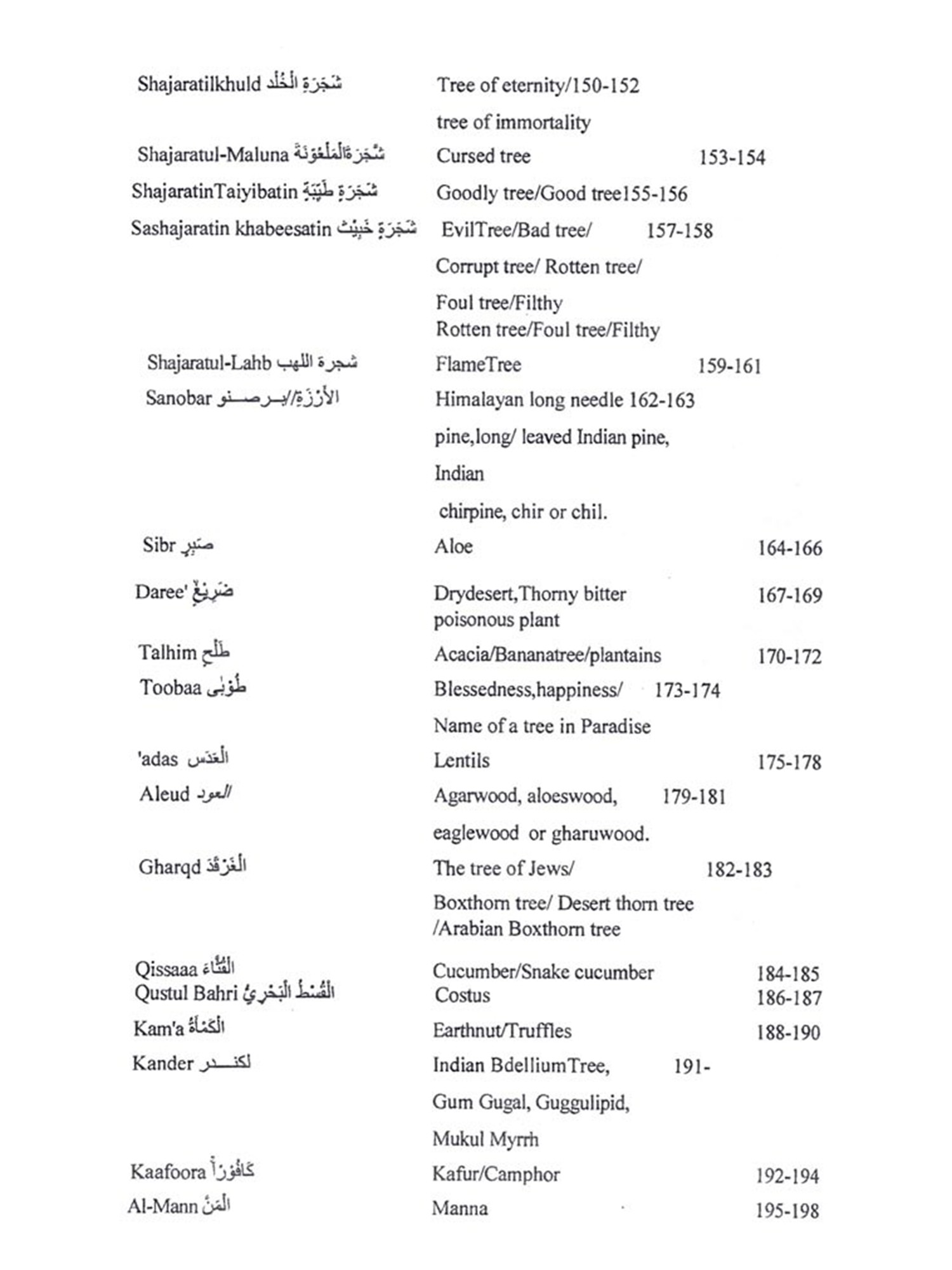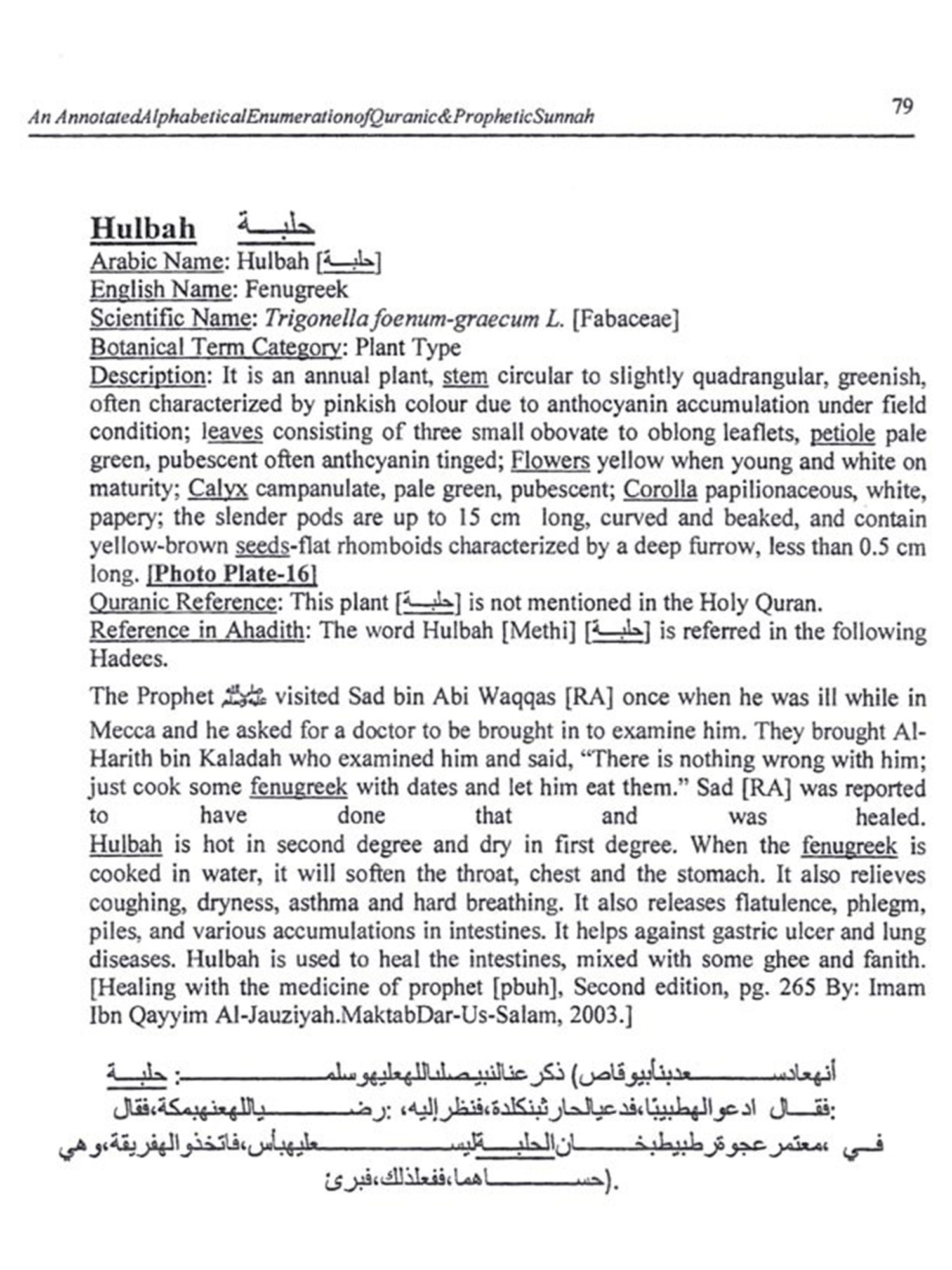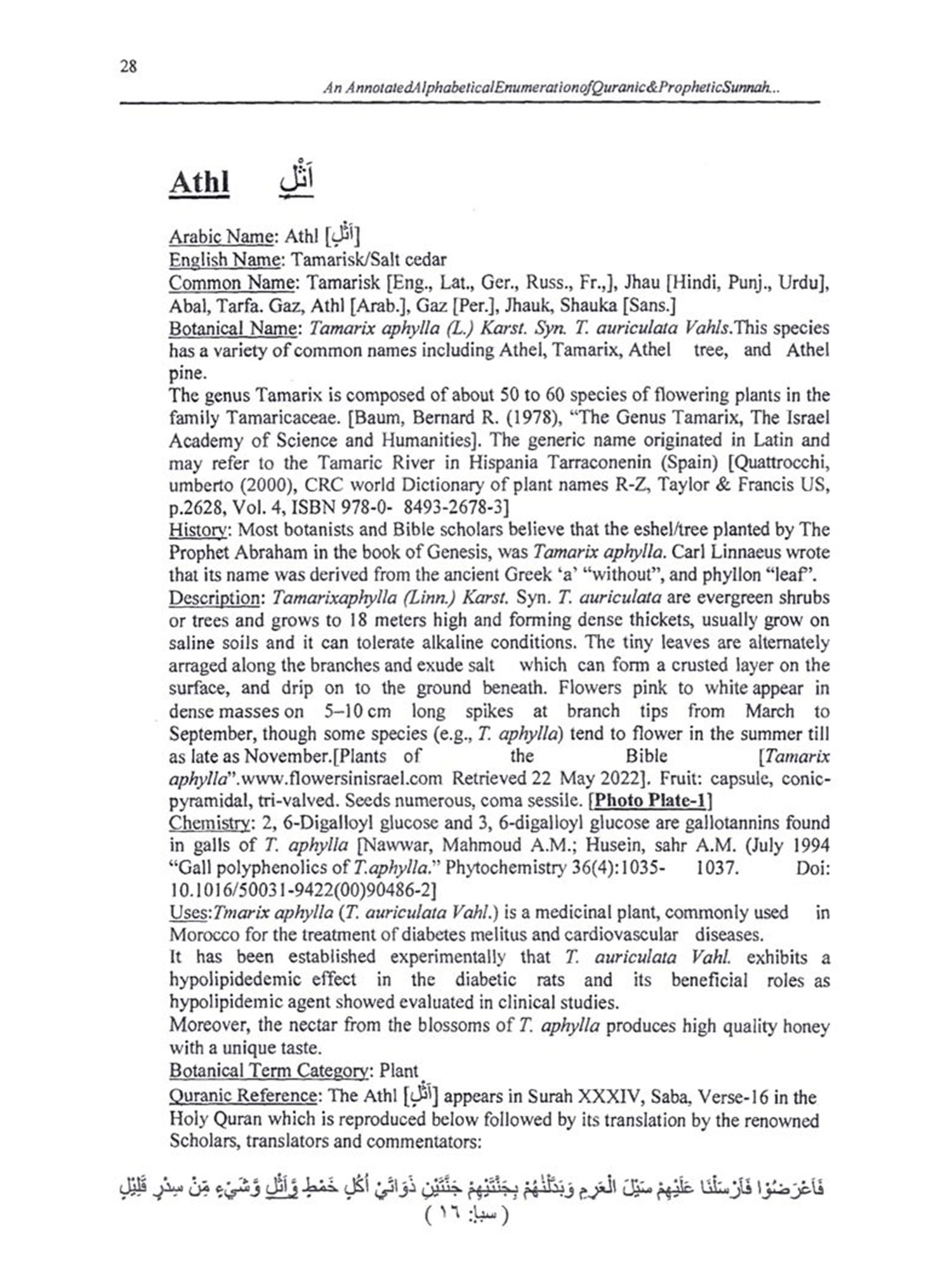 An Annotated Alphabetical Enumeration of Quranic & Prophetic/Sunnah Plants, Their Parts & Related Terms