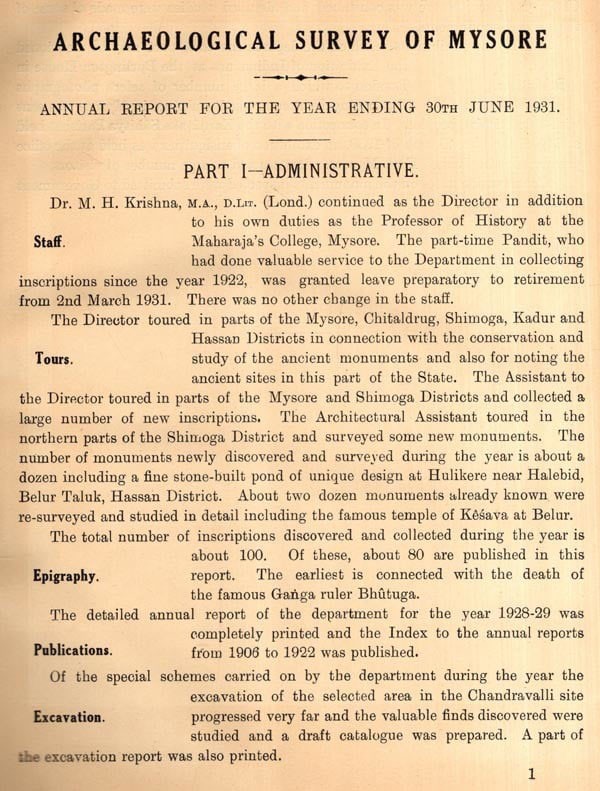 Annual Report of the Mysore Archeological Department for the Year 1931 (An Old and Rare Book) (Only 1 Quantity Available)