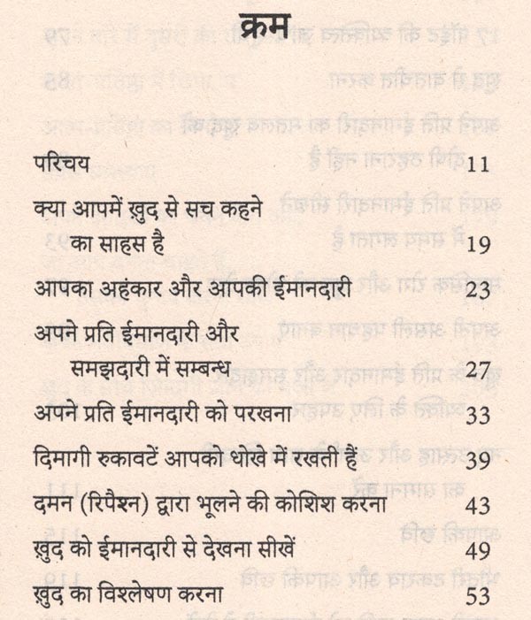 किसी भी संस्कृति में ईमानदारी को बहुत महत्त्व दिया जाता है। औरों के प्रति ईमानदारी महत्त्वपूर्ण है, लेकिन उसकी तुलना खुद के प्रति ईमानदारी से नहीं की जा सकती, जो सभी प्रकार की ईमानदारी और सच्ची खुशी के लिए ज़रूरी है।