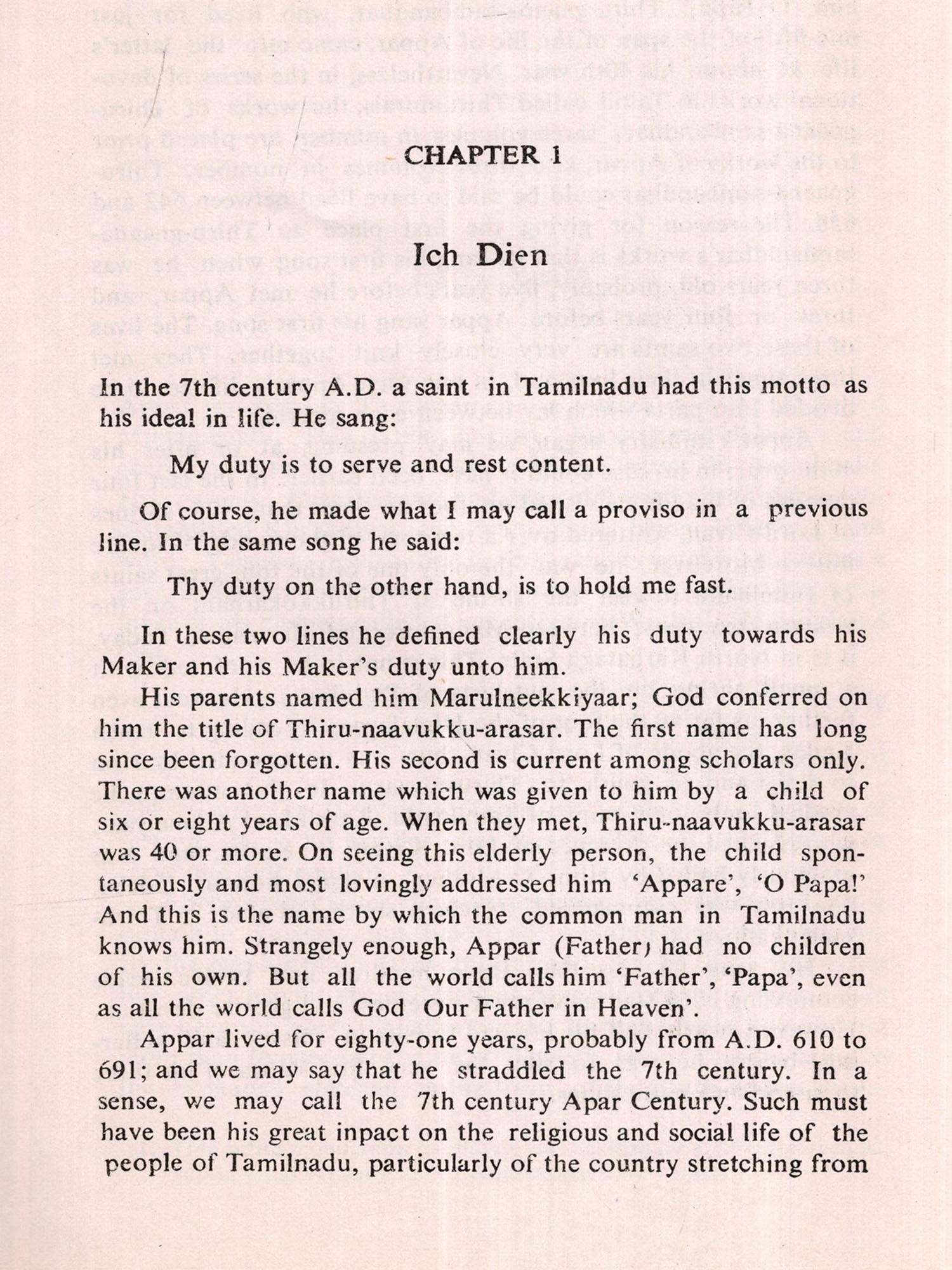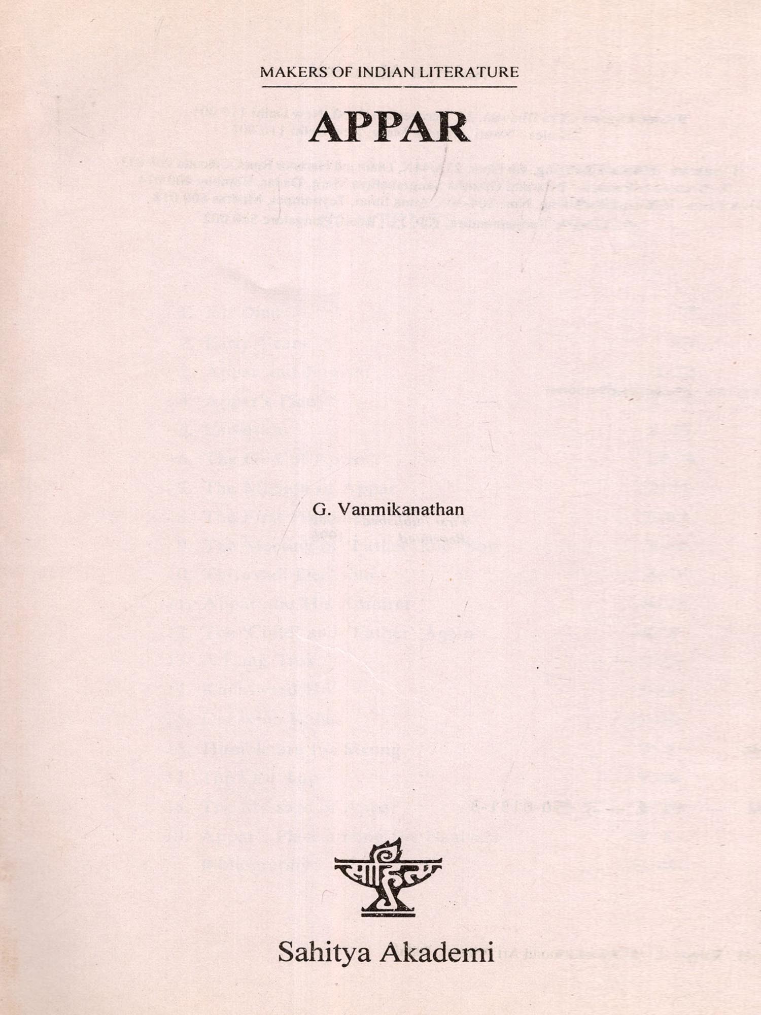 Sri G. Vanmikanathan (b. 1901) has already written on Maanikkavaachakar and Ramalingar in this Series. Now he introduces the life and work of Appar, mainly to the non-Tamil readers.