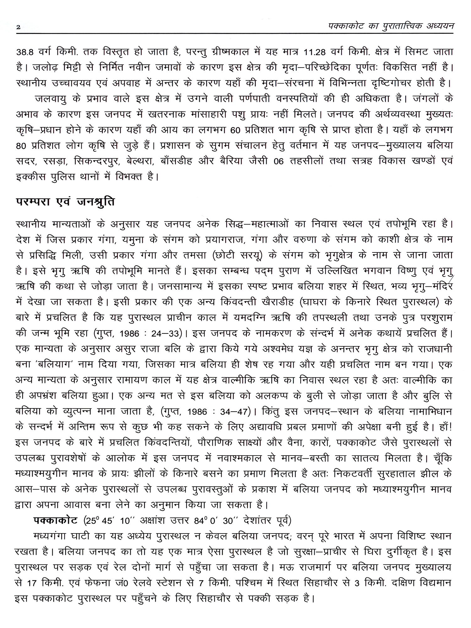 व्यष्टि एवं समष्टि के साथ-साथ प्रत्येक स्थान का भी अपना इतिहास होता है। नीलमत पुराल जैसे स्थल-पुराणों से मिन्न-भिन्न स्थलों के इतिहास पर प्रकाश पड़ता है। पुराविद जहाँ सर्वेक्षण एवं उलखनन के माध्यम से किसी पुरास्थल विशेष के सांस्कृतिक अनुक्रम एवं क्रमिक विकास का निर्मरण करता है, नहीं इतिहासकार प्रतिवेदित पुरावस्तुओं की ऐतिहासिक व्याख्या कर उसके विकास के इतिहास का समग्र चित्र प्रस्तुत करता है और भाषाशास्त्री नामाभिधान के आधार पर नाम-परिवर्तन के माध्यम से उसके अभिज्ञान का प्रयास करता है। प्रस्तुत ग्रन्थ पक्काकोट का पुरातात्विक अध्ययन मध्य गंगा मैदान के बलिया जिले के, छोटी सरयू-गंगा-मंगई सगम से लगभग 5 किलो मीटर पूरण, उत्तर-पश्चिम में बूढ़ी नदी (लकड़ा नाला), जो 2 किलो मीटर पूरब जाकर छोटी सरयू में मिल जाती है तथा दक्षिण में छोटी सरयू से एक किलो मीटर उत्तर, जो कभी टीले से सटे बहती रही, से आवृत्त 'पक्काकोट' तथा उसके पार्श्ववती पुरास्थलों के 2010-2011 से 2015-16 की अवधि के पुरातास्थिक सर्वेक्षण, पक्काकोट के उत्खनन और सर्वेक्षित उत्खनित पुरावस्तुओं की ऐतिहासिक व्याख्या तथा नामरूप के भाषाशास्त्री विवेचन तीनों पर आधारित है।