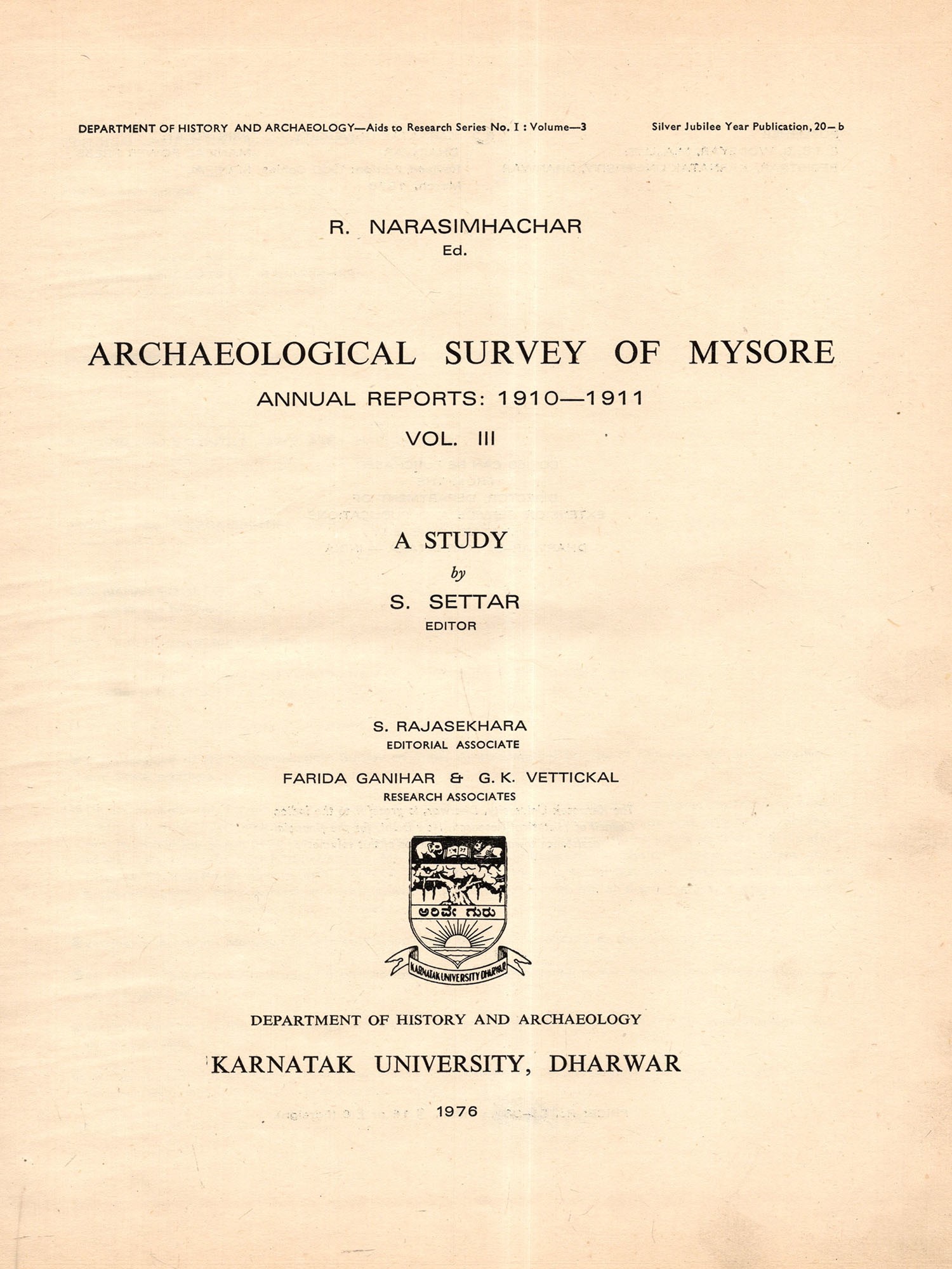 Archaeological Survey of Mysore Annual Report: 1912 Vol. IV- A Study by S. Settar (An Old and Rare Book)