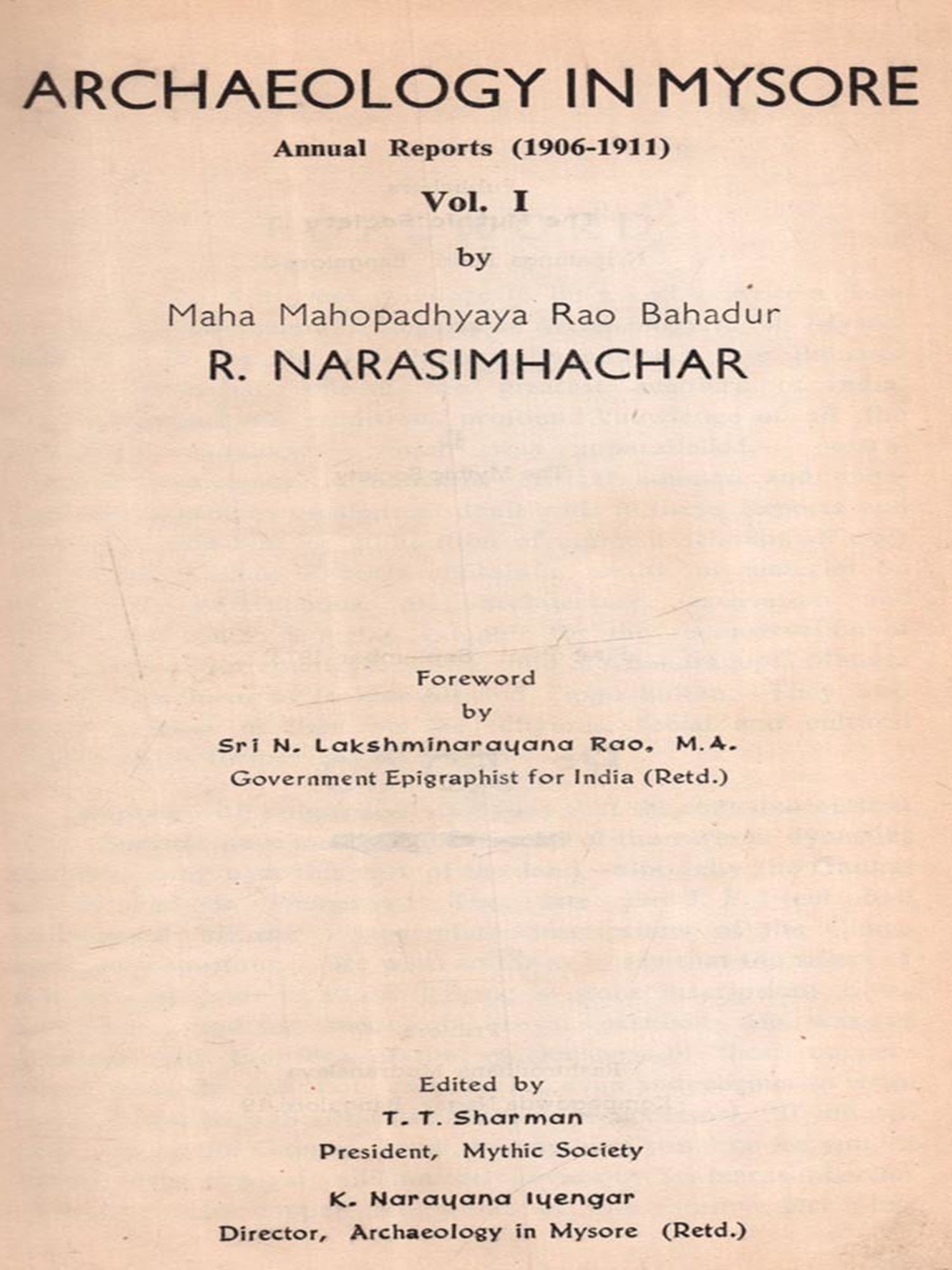 on Archaeology in the Mysore State (vol. 1) by the late Mahamahopadhyaya Rao