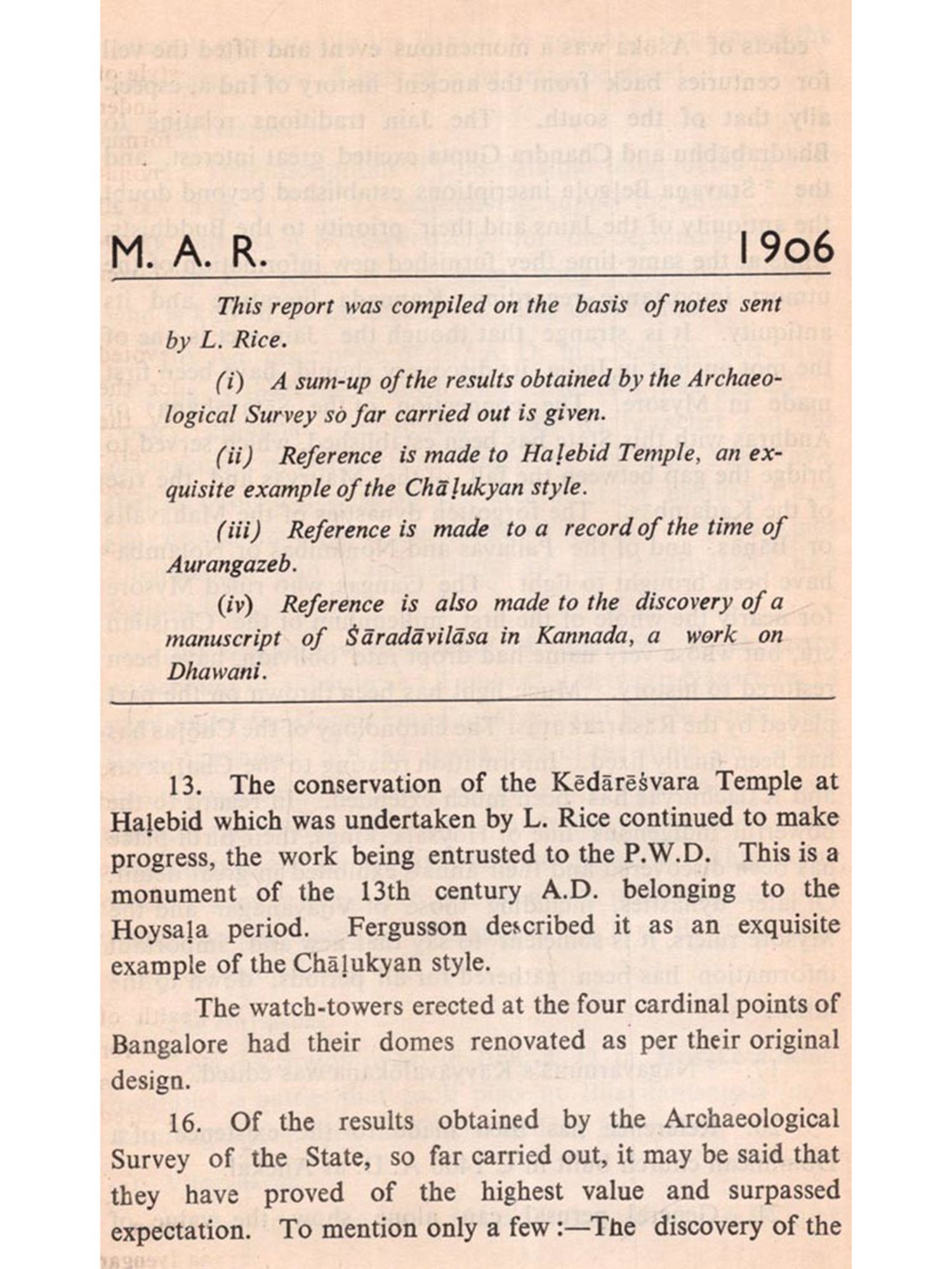 dynasty. Coming to art and architecture, Sri Narasimhachar's Reports are a rich