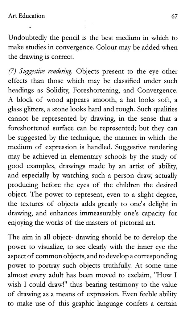 The result is seen in our generally accepted aristocratic conception of art. The rich feel that beauty is a perquisite of prosperity. The poor hardly dare to consider it as their right. The artists themselves, conscious of their best-paying client age, despite their protestations to the contrary, devote a disproportionate amount of their genius and energy to art forms especially adapted to the uses of the prosperous leisure class. Their interest in design applies itself to the composition of portraits far more than to the structure of cups and saucers. They have the defense that creative power must supply the demand of the appreciative. If such be the case, we must develop a democratic art through the bestowal of taste on the multitude. This is the task of art education in the schools.