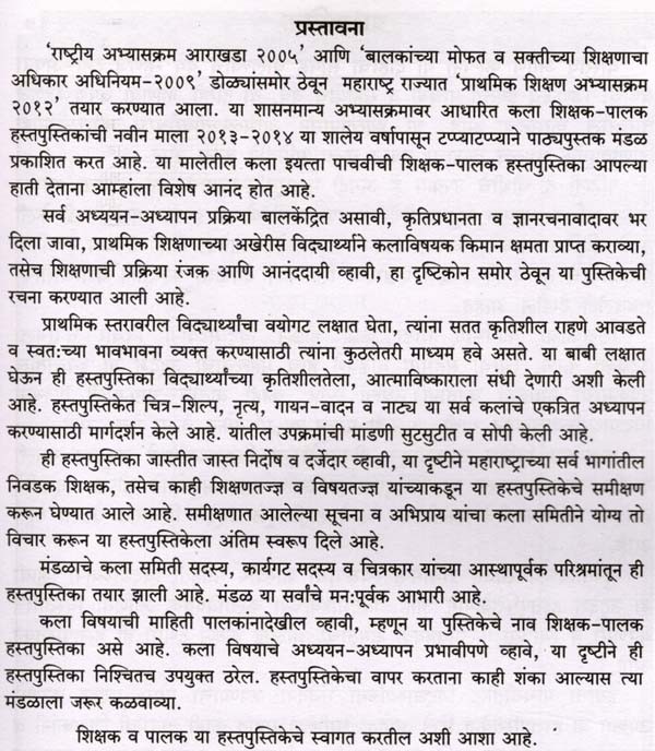 कला शिक्षण शिक्षक (पालक हस्तपुस्तिका इयत्ता चौथी): Art Education Teacher- Parent Handbook in Marathi (Class-4)