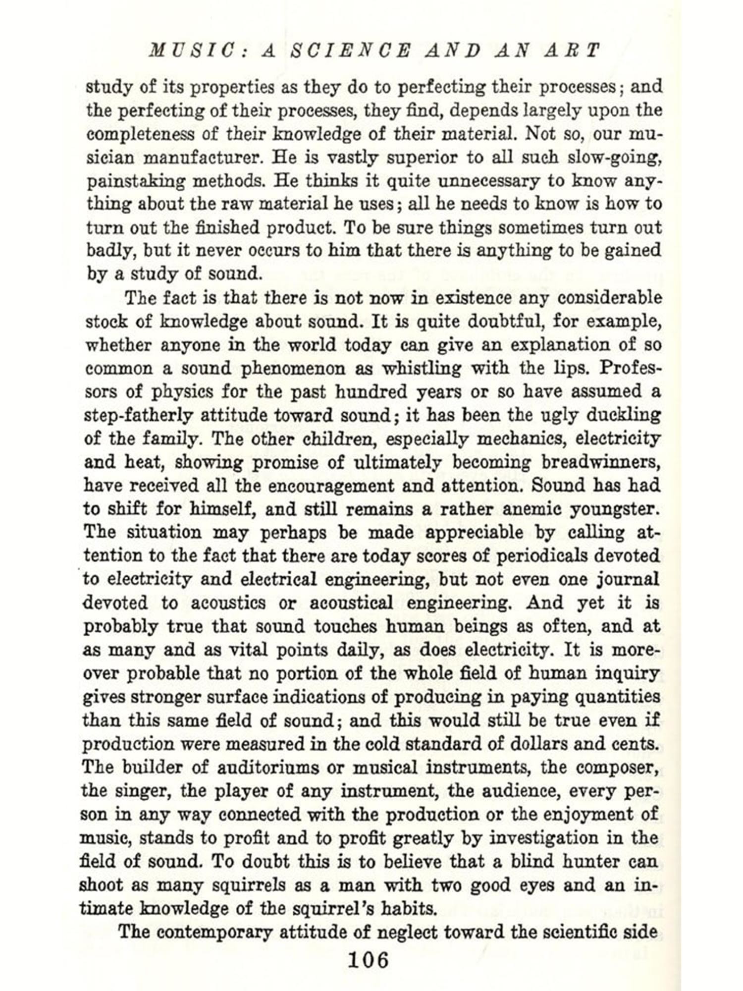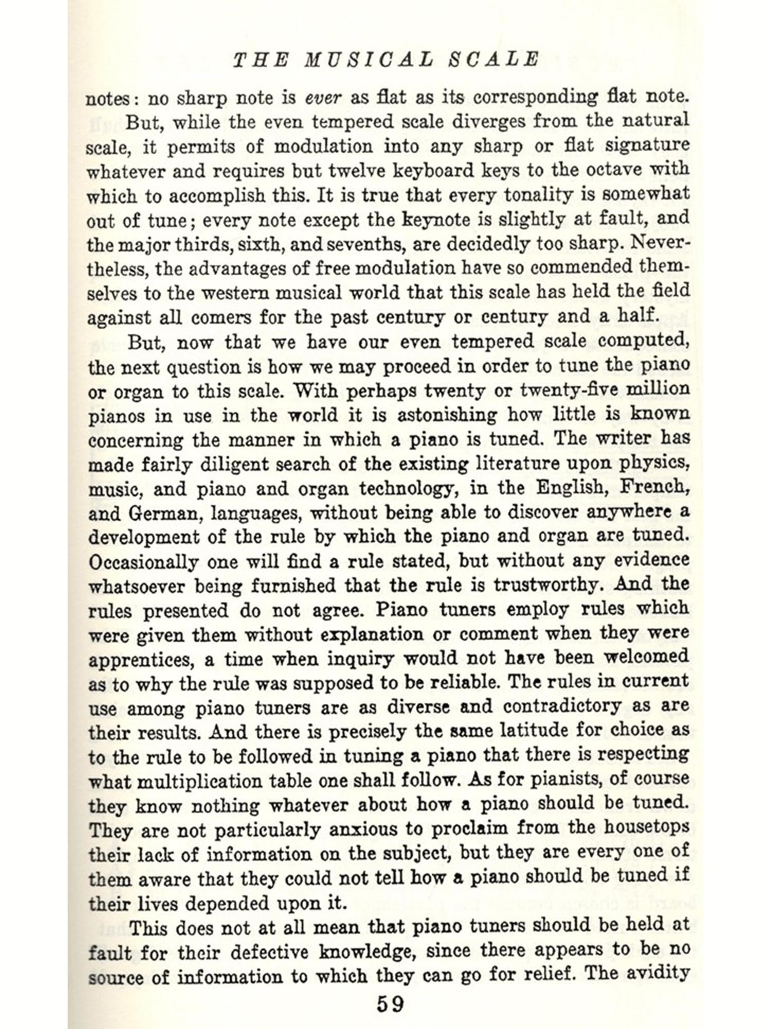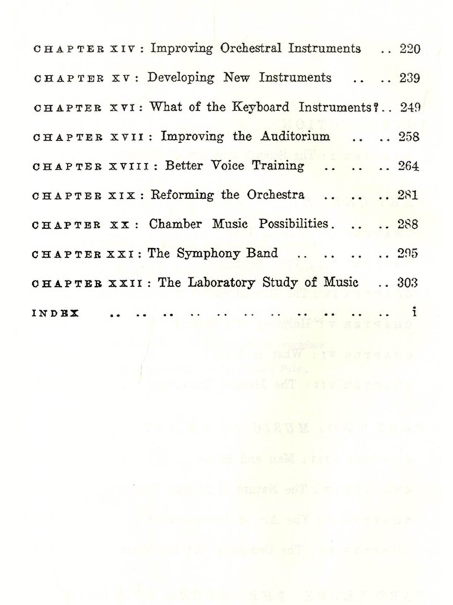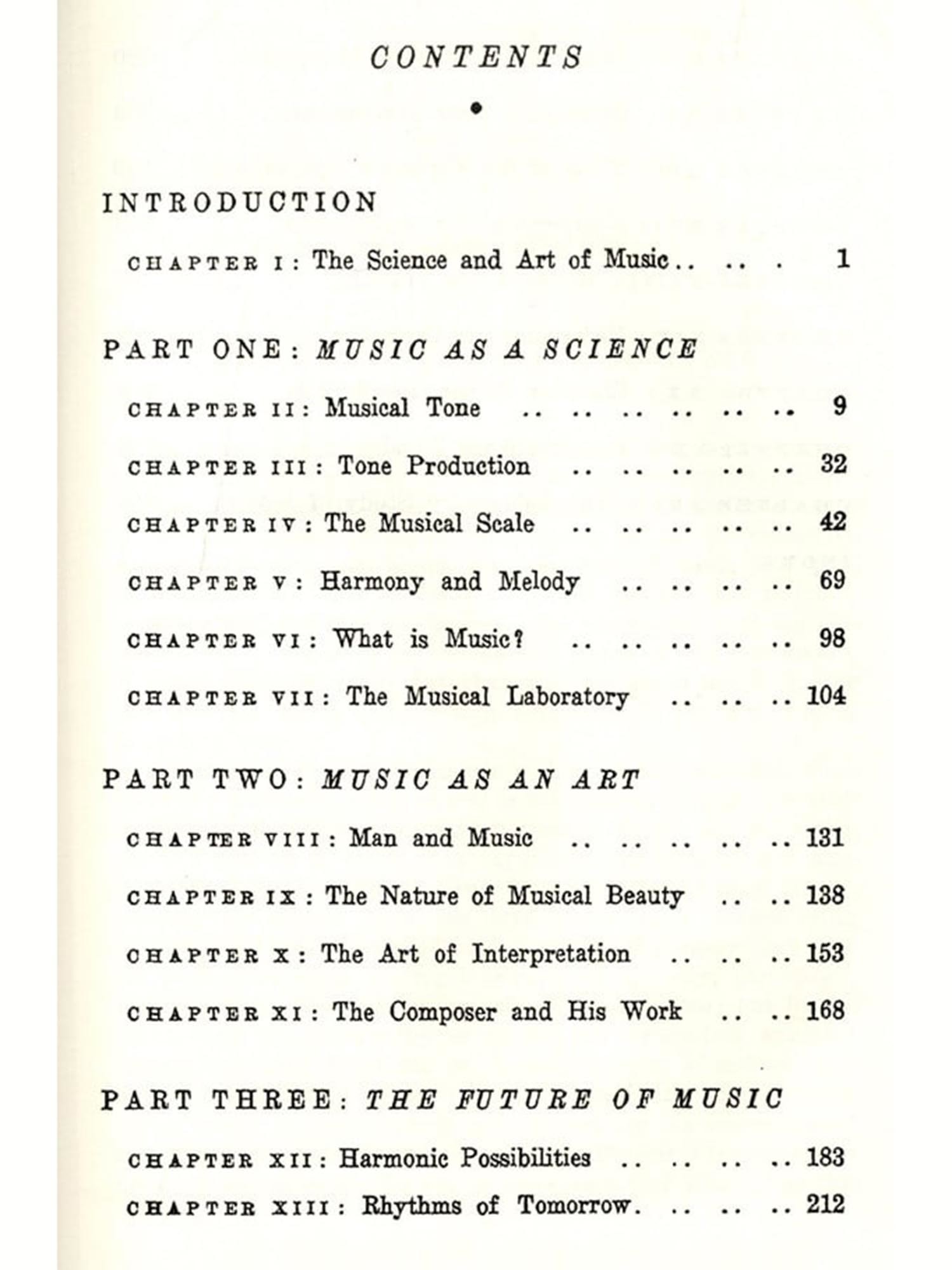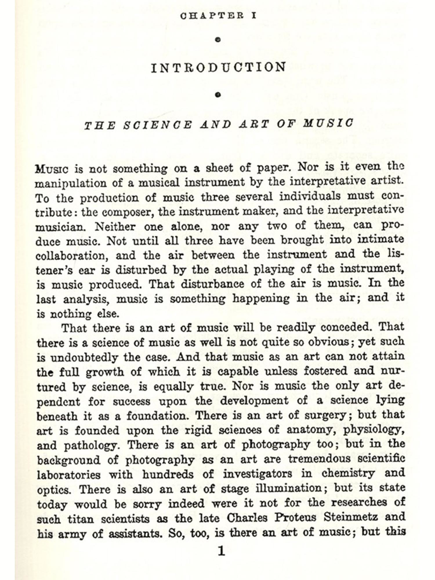 The present volume is not intended as a treatise on the science and art of music, nor does it presuppose upon the part of the reader any training in music either scientific or artistic. It is addressed to that portion of the intelligent reading public having an interest in music whether with or without training in it. The message it is hoped to convey is that music has a twofold root, one branch going in the direction of science, the other in the direction of art. The artistic approach to music is already cultivated with astonishing zeal, though with what wisdom may be open to question. That there is a scientific approach to music is quite ignored. It is as an urgent invitation to cultivate the scientific approach to music that the book has been written. If it shall establish that there is a scientific aspect to music, and shall persuade of the advisability of approaching music from the scientific as well as from the artistic side, it will have accomplished its purpose.