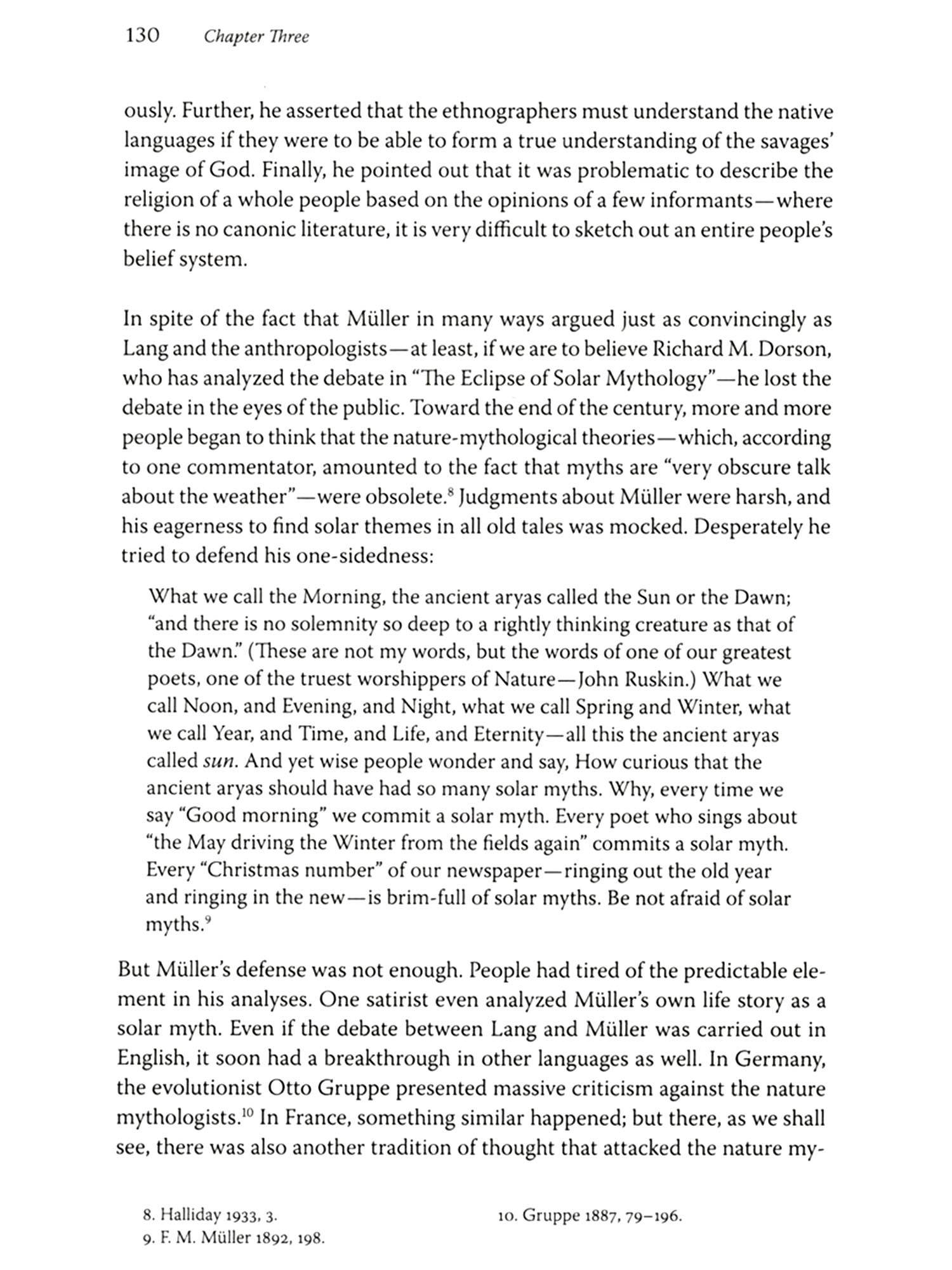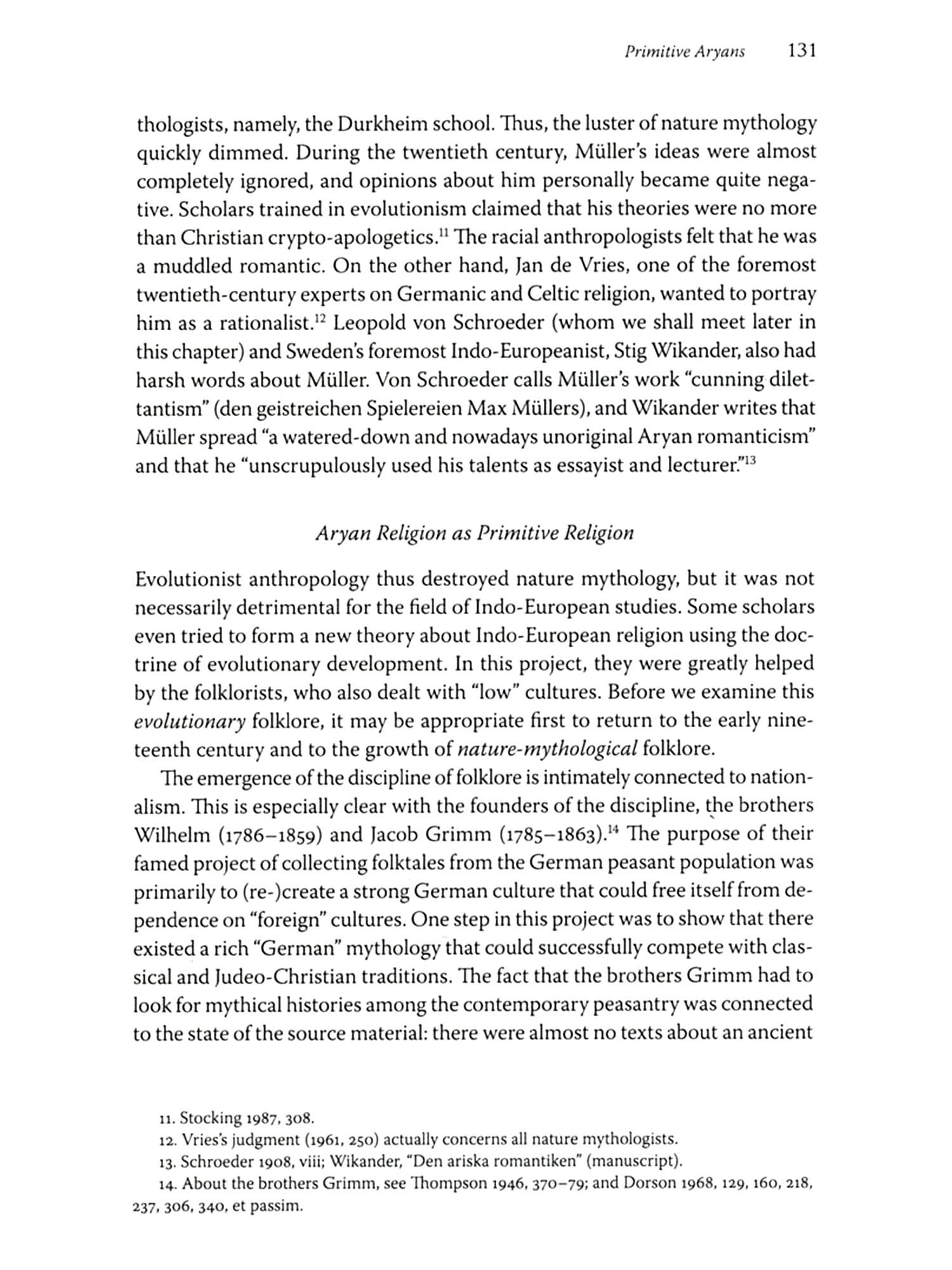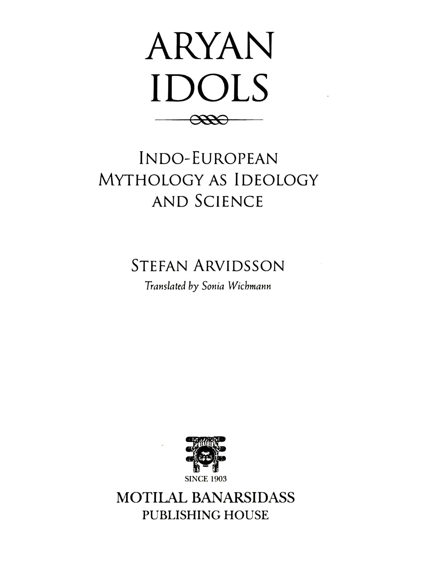 I began work on Aryan Idols in the fall of 1995. It has mainly been carried out at the Department of Theology at Lund University, which is a very stimulating milieu for anyone interested in studying how ideological motives influence science. For support, encouragement, and a great deal of wisdom, I thank the participants in the seminar on the history of religions. The seminar is led by Tord Olsson, who was also my adviser during the first years, and I thank him for stimulating and inspiring conversations. During the last years, Catharina Raudvere was my adviser, and I thank her for sage advice about cultural his-tory and historiography, and for an unfailing faith in the value of my work. I would further like to thank all of those who have been good enough to help me, by letter or otherwise, to understand things about the study of the Indo-Europeans and their mythology: Anders Andrén, Göran Dahl, Sten Dahlstedt, Ulf Drobin, Mattias Gardell, Cristiano Grottanelli, Jan Hjärpe, Åke Hultkrantz, Peter Jackson, Carl-Martin Edsman, Claude Lévi-Strauss, Sven-Eric Liedman, Patrizia Pinotti, Edgar Polomé, Jaan Puhvel, Colin Renfrew, Stephanie von Schnurbein, Eva Stohlander Axelsson, Jesper Svenbro, and Ulla Wikander. For extra contributions in the area, I thank Erik af Edholm, Olav Hammer, and Leif Lindin. Many thanks to Jonathan Z. Smith, who let me use an unpublished manuscript about Frazer and Indo-European mythology. I thank Per Haupt for informing me of the educated public's opinion about my dissertation. Sincere thanks also for the invaluable contributions of the following people: editorial director Alan Thomas, manuscript editor Erik Carlson, promotions manager Stephanie Hlywak, and assistant editor Randy Petilos, of the University of Chicago Press, and translator Sonia Wichmann.