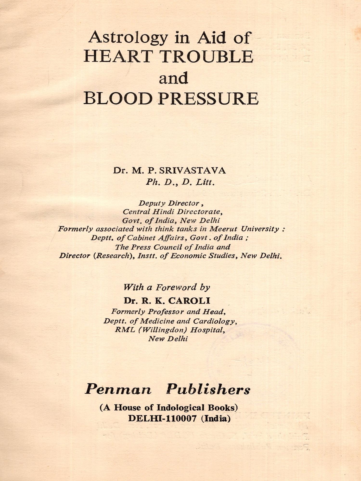 In this book some of the important planetary placements, and combinations have been discussed, which may cause blood pressure or heart trouble and thus may cast an adverse impact on the life of a person. Besides, some 810 combinations have been explained on casting such impacts as blood pressure, heart trouble etc.